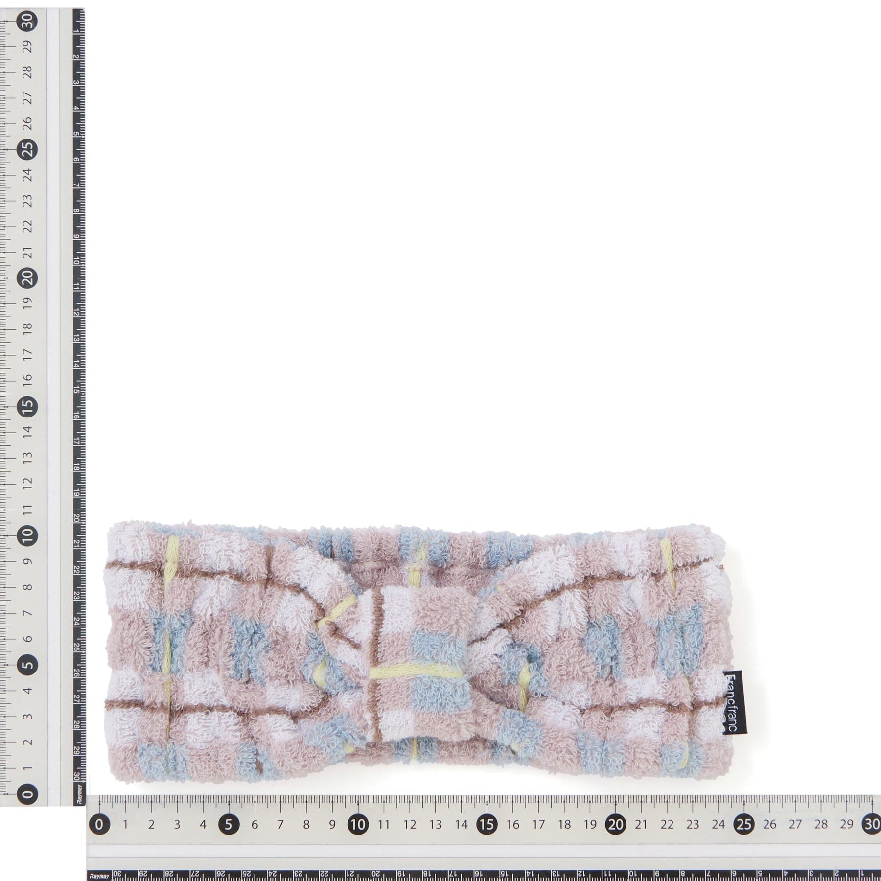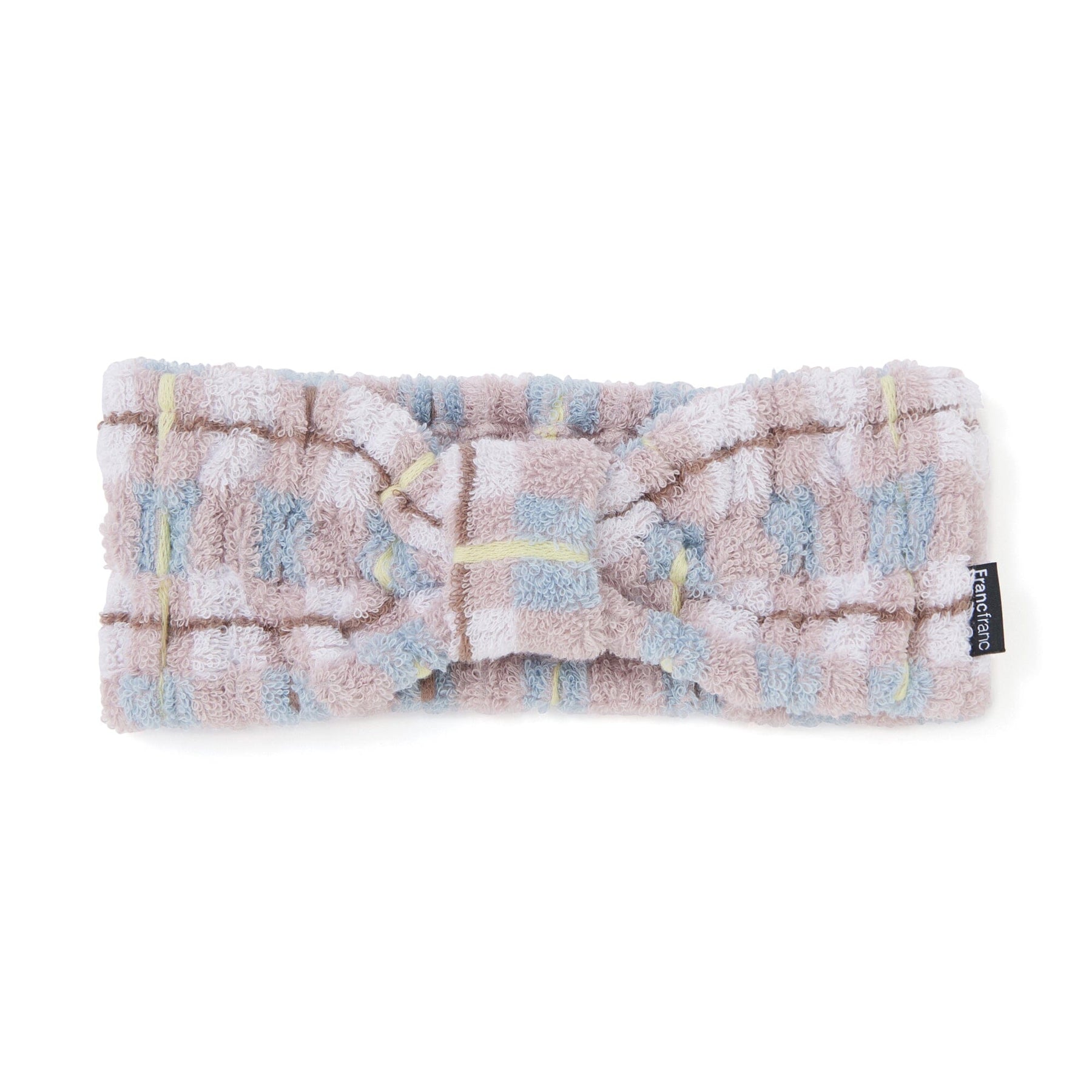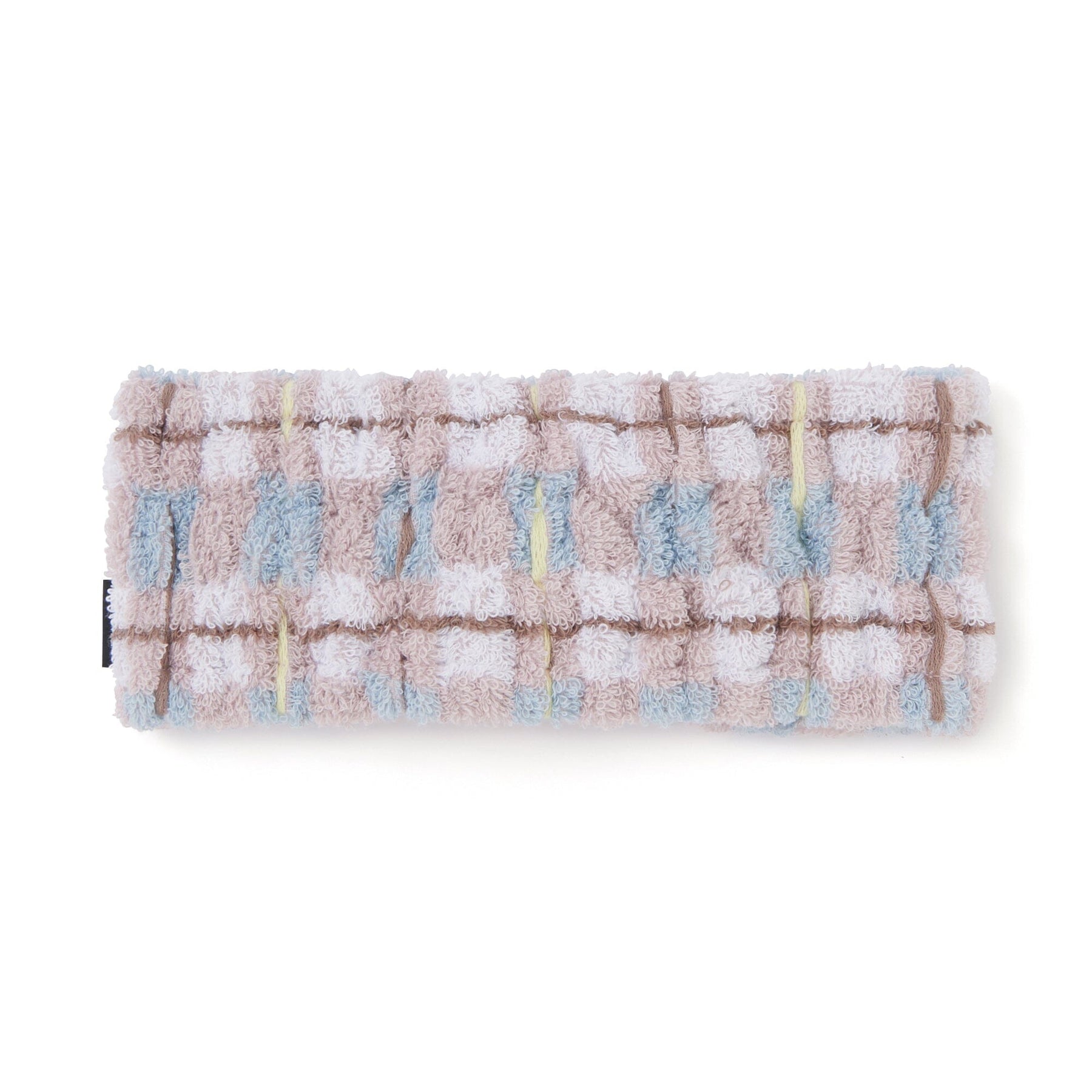 This hairband features a checkered pattern with a single pastel accent color.