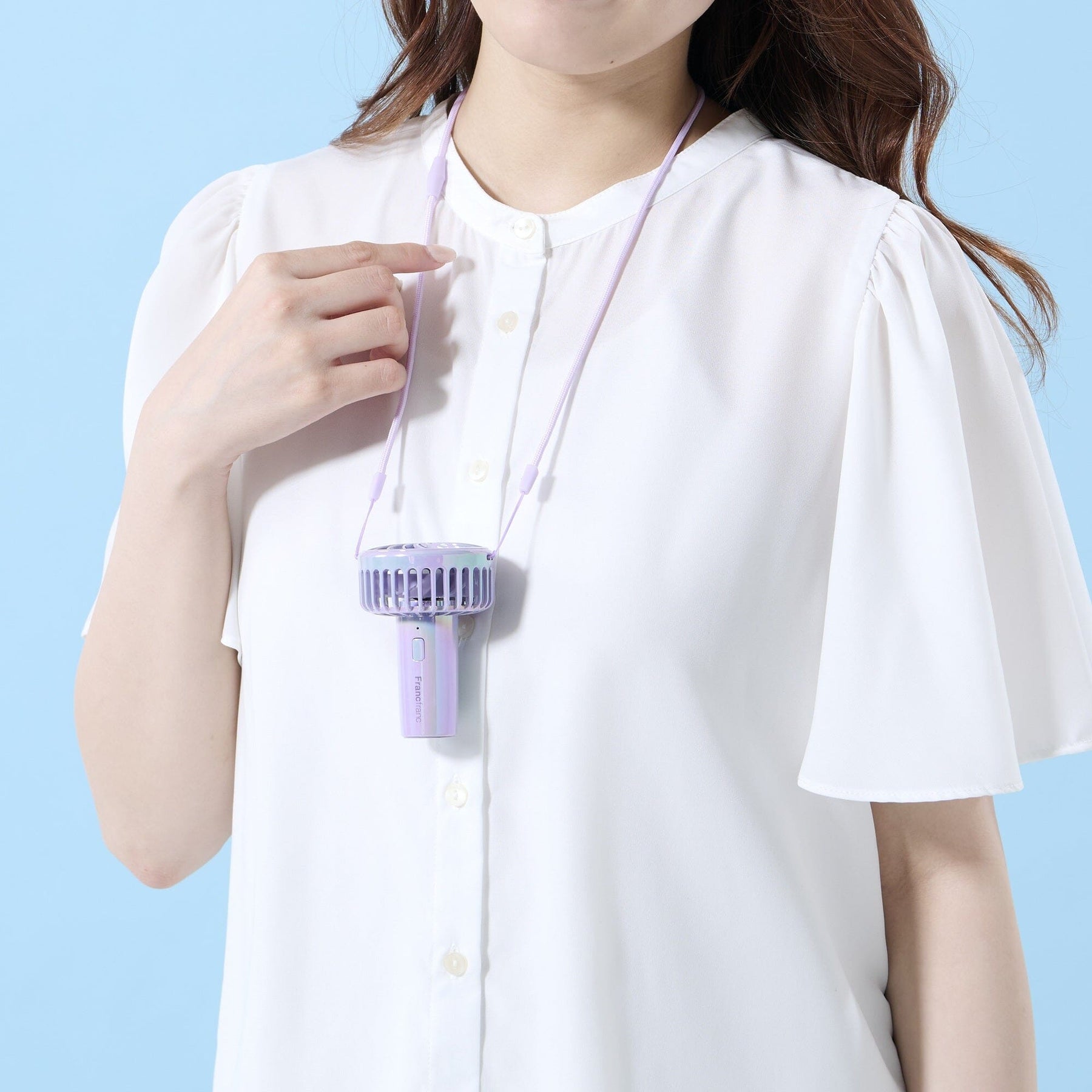Taking advantage of its surprisingly light weight, you can attach it to your parasol or other items, and you can also carry it hands-free by attaching the included neck strap and wearing it around your neck.