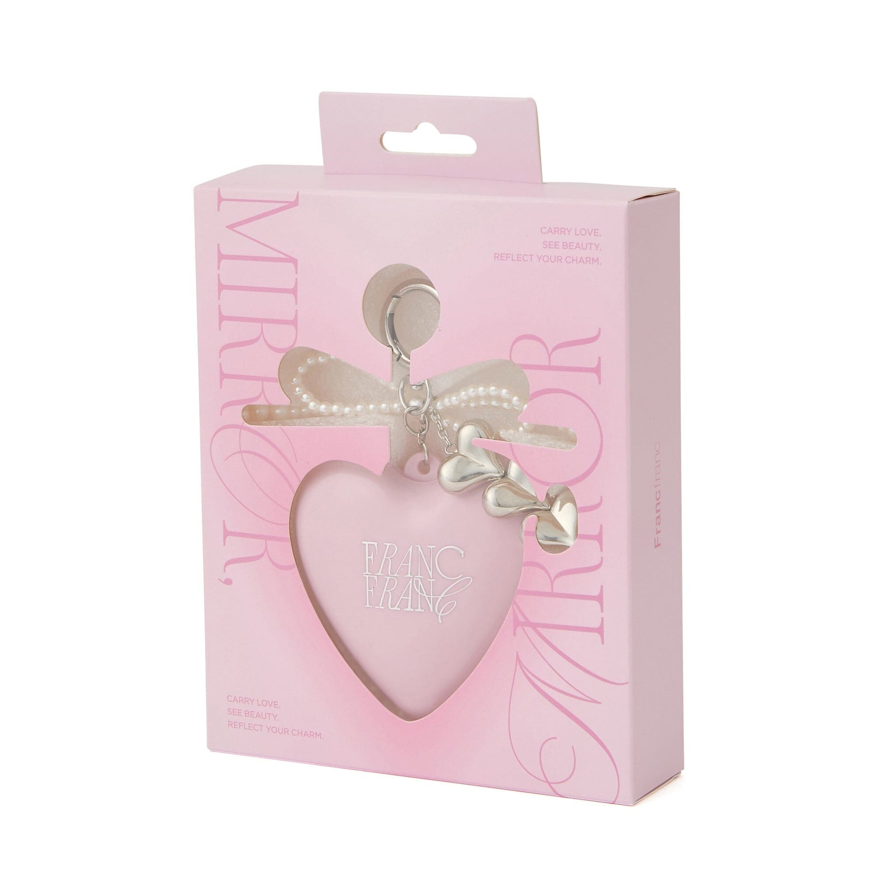 It comes with a carabiner, so you can attach it to your bag as a large heart charm. When opened, it reveals a mirror and brush, perfect for quick lip or hair touch-ups on the go.
