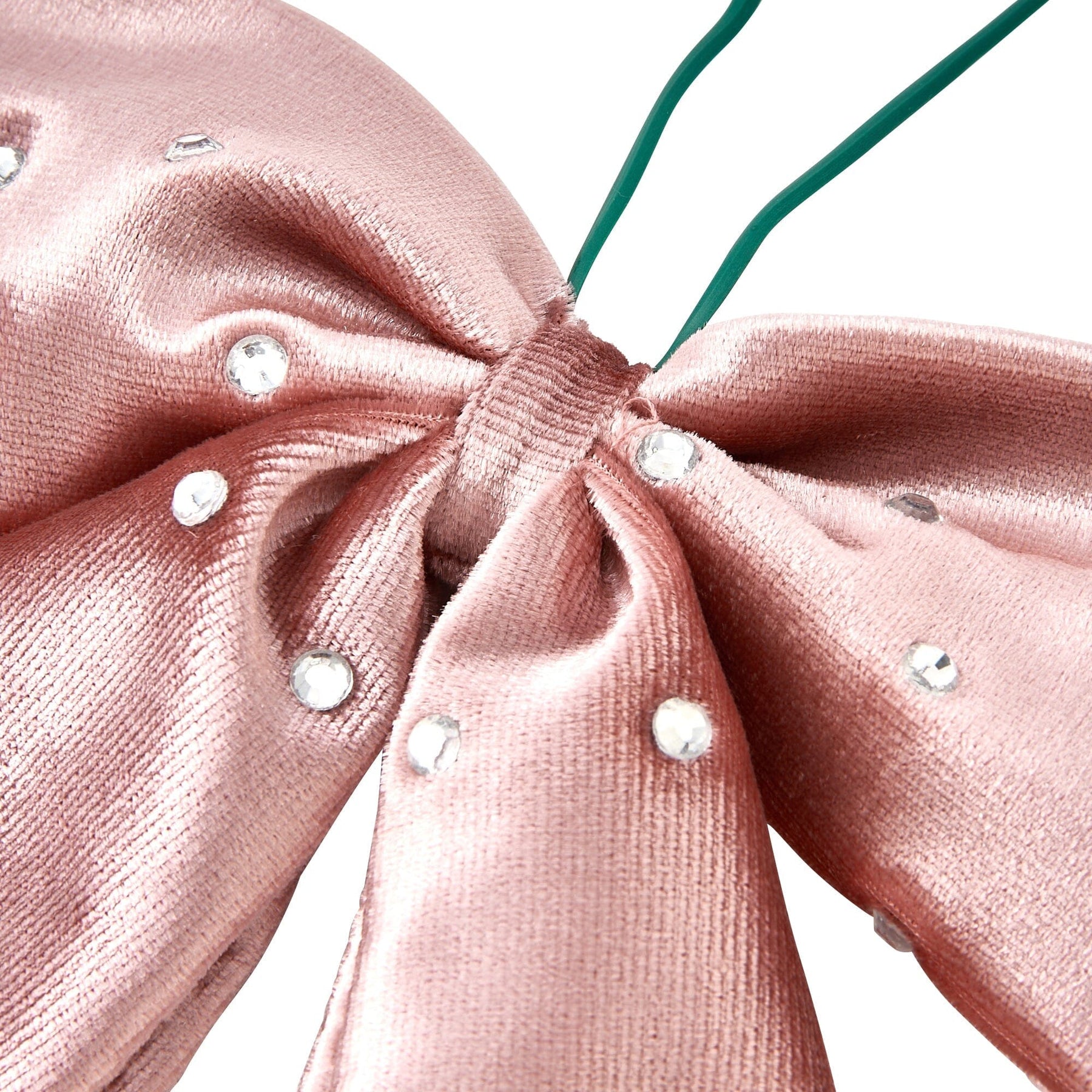 This set contains six velour ribbon ornaments.Three ornaments are adorned with jewels and three are plain.