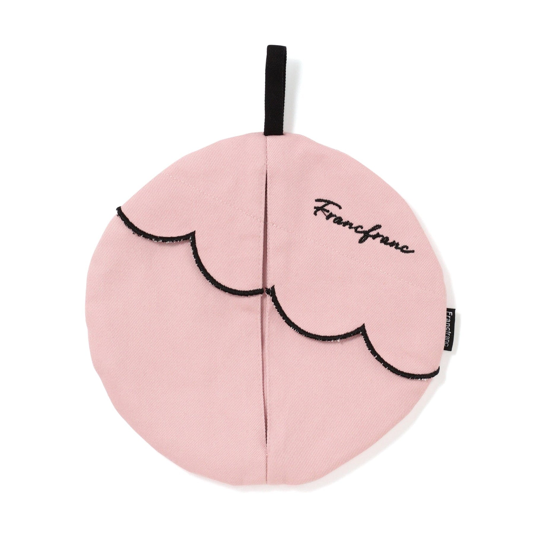 A cute round pot holder with a scalloped design.It is thick and sturdy, so you can safely carry hot cooking utensils such as pots and pans.