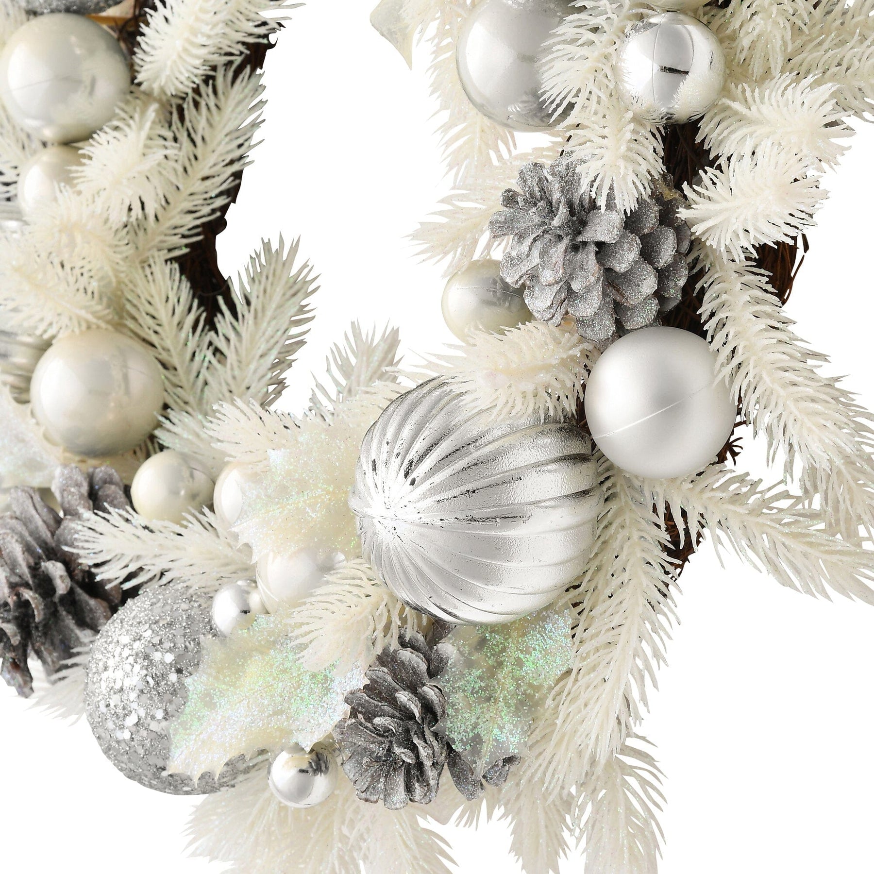This gorgeous wreath features a white and silver color scheme.Its striking design makes it easy to enjoy a Christmas-like atmosphere with just one piece.