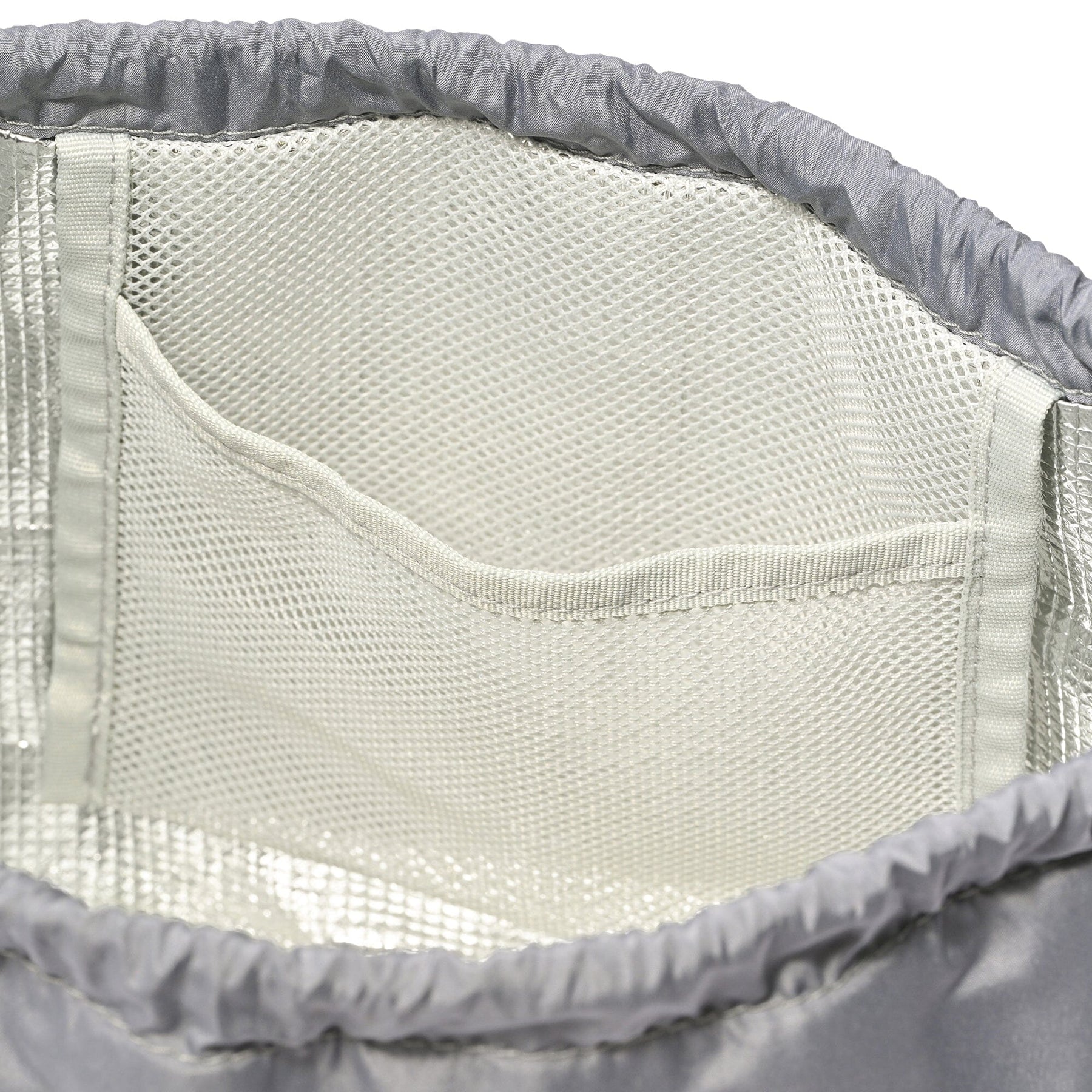 Material: Drawstring bag, piping, and drawstring: Polyester, organza: Polyester, mesh (for ice pack pocket): Polyester, lining: EVA, printed tag: Polyester