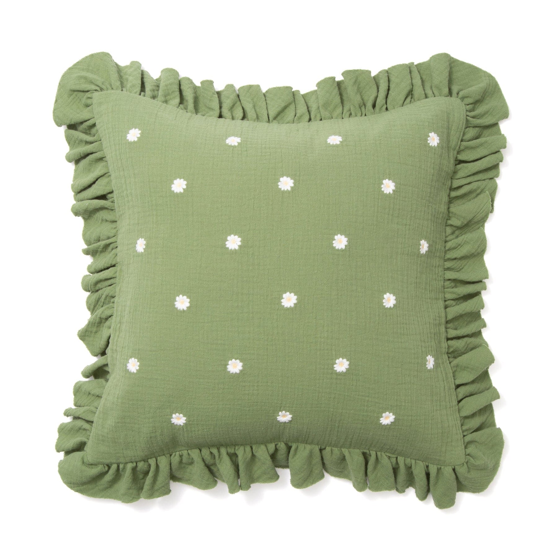 Emb Flower Frill Cushion Cover 450X450 Green