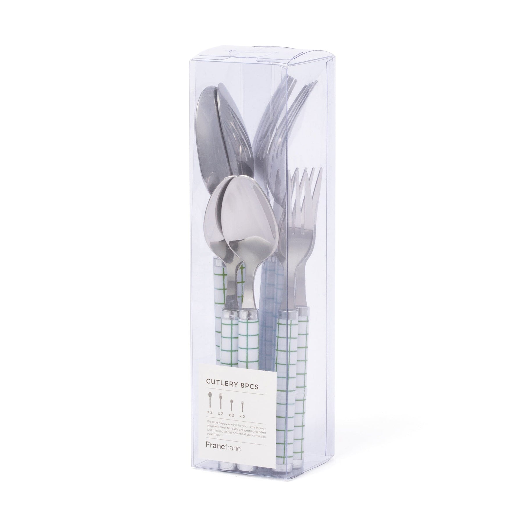Cutlery Set Of 8 Check Green