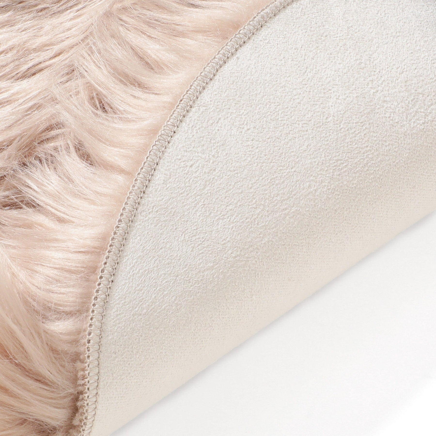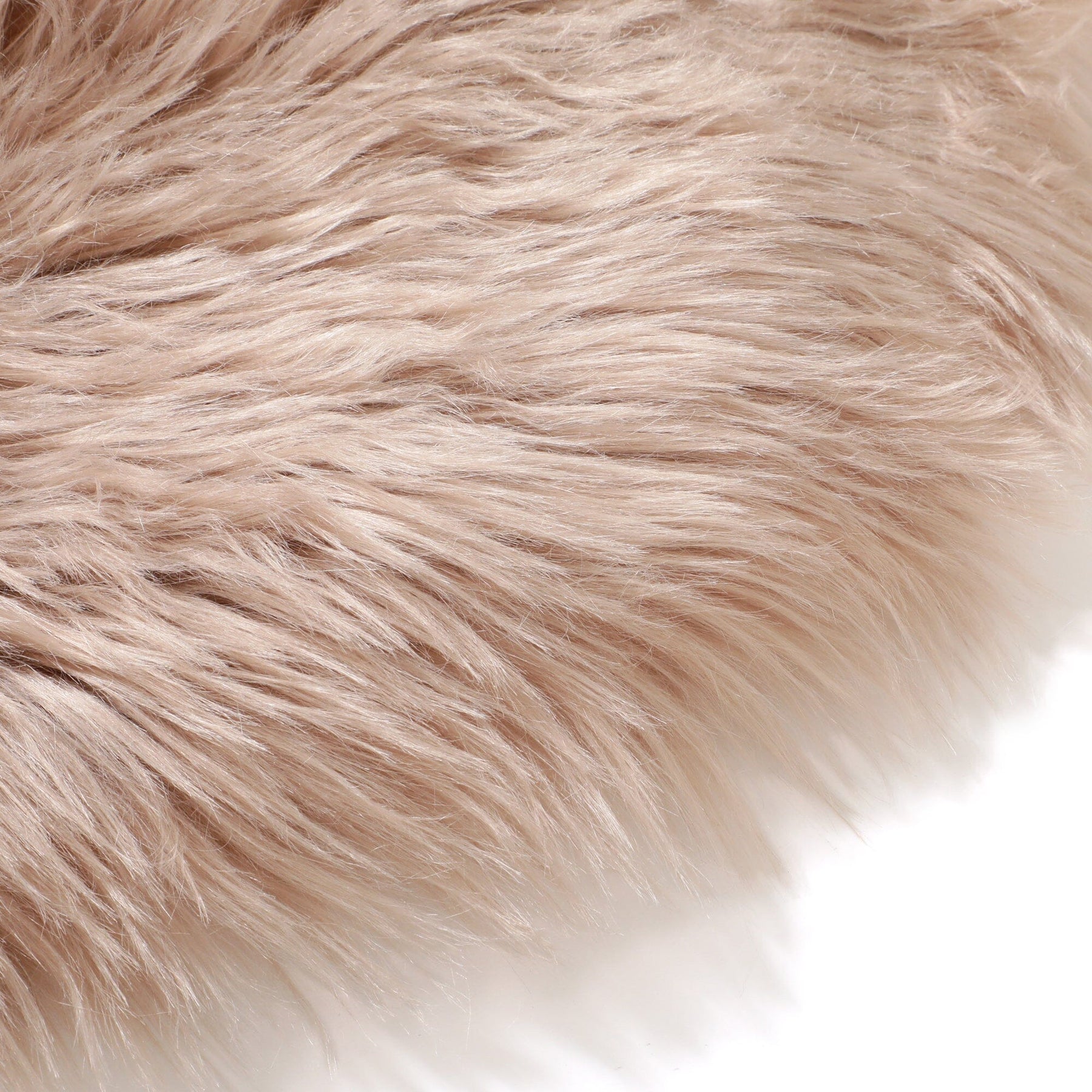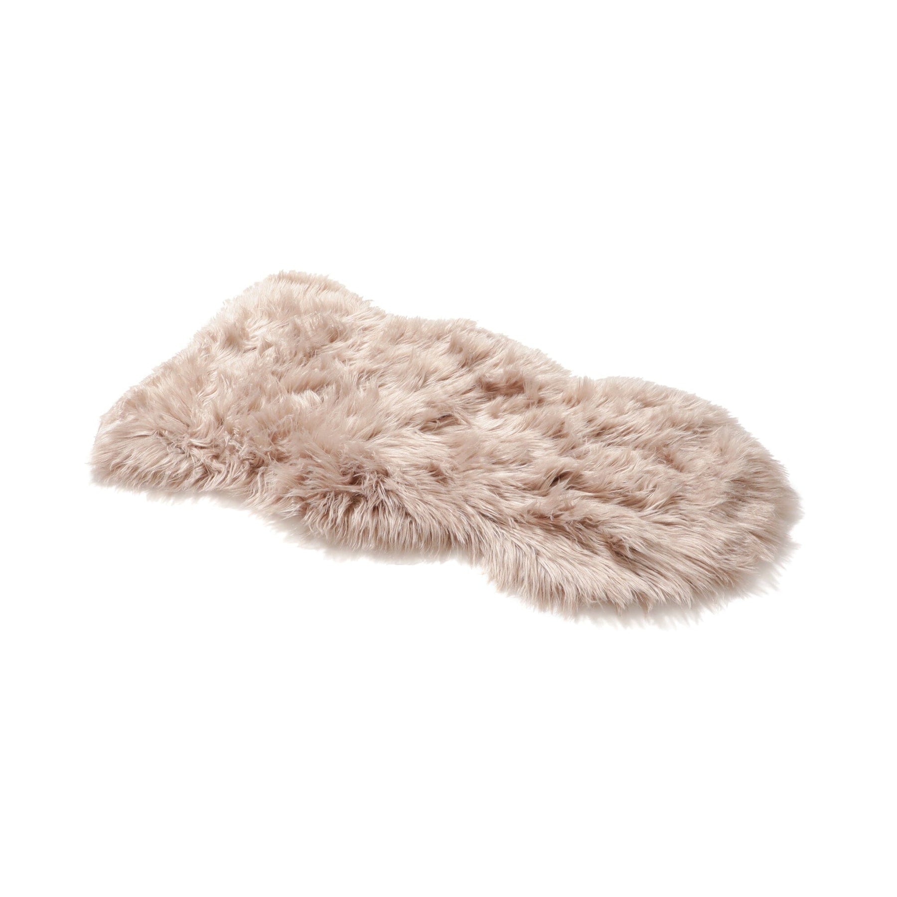 This rug features a wintery design made with faux fur, while retaining the shape of a sheepskin rug.The long, voluminous fur of the sheepskin-like material makes it soft and fluffy to the touch. The densely packed fur gives it a lustrous sheen, creating an elegant and luxurious impression.