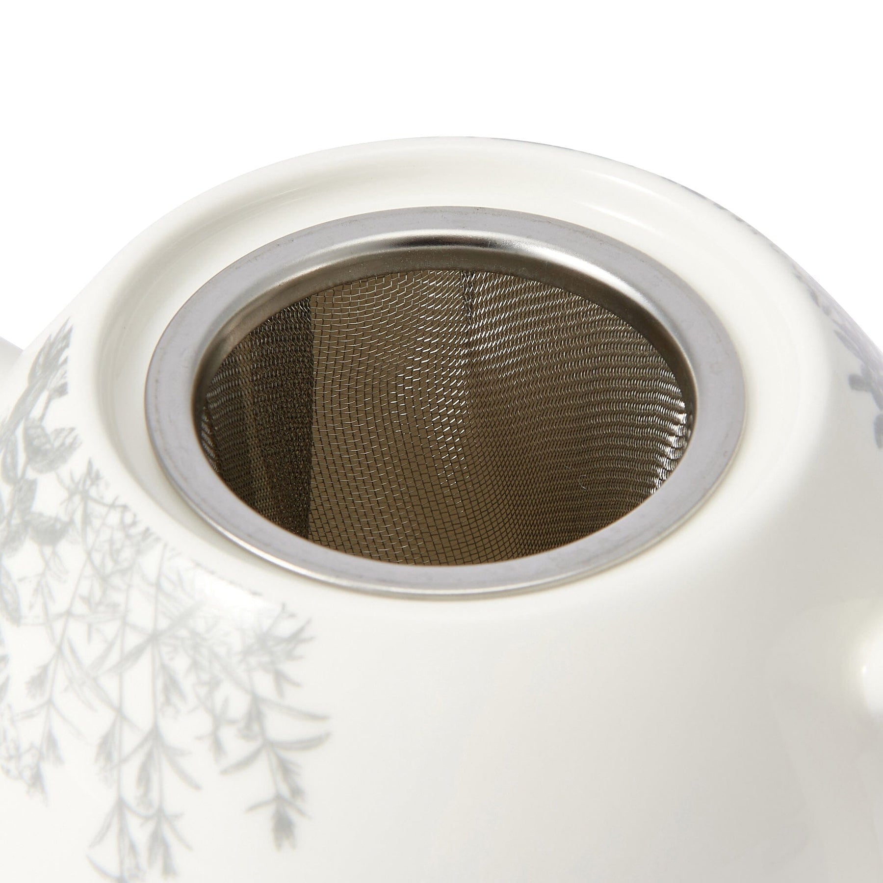 Size: W110×D190×H133mm Capacity: 650mlMaterial: Body: New bone china, Tea strainer: Stainless steel