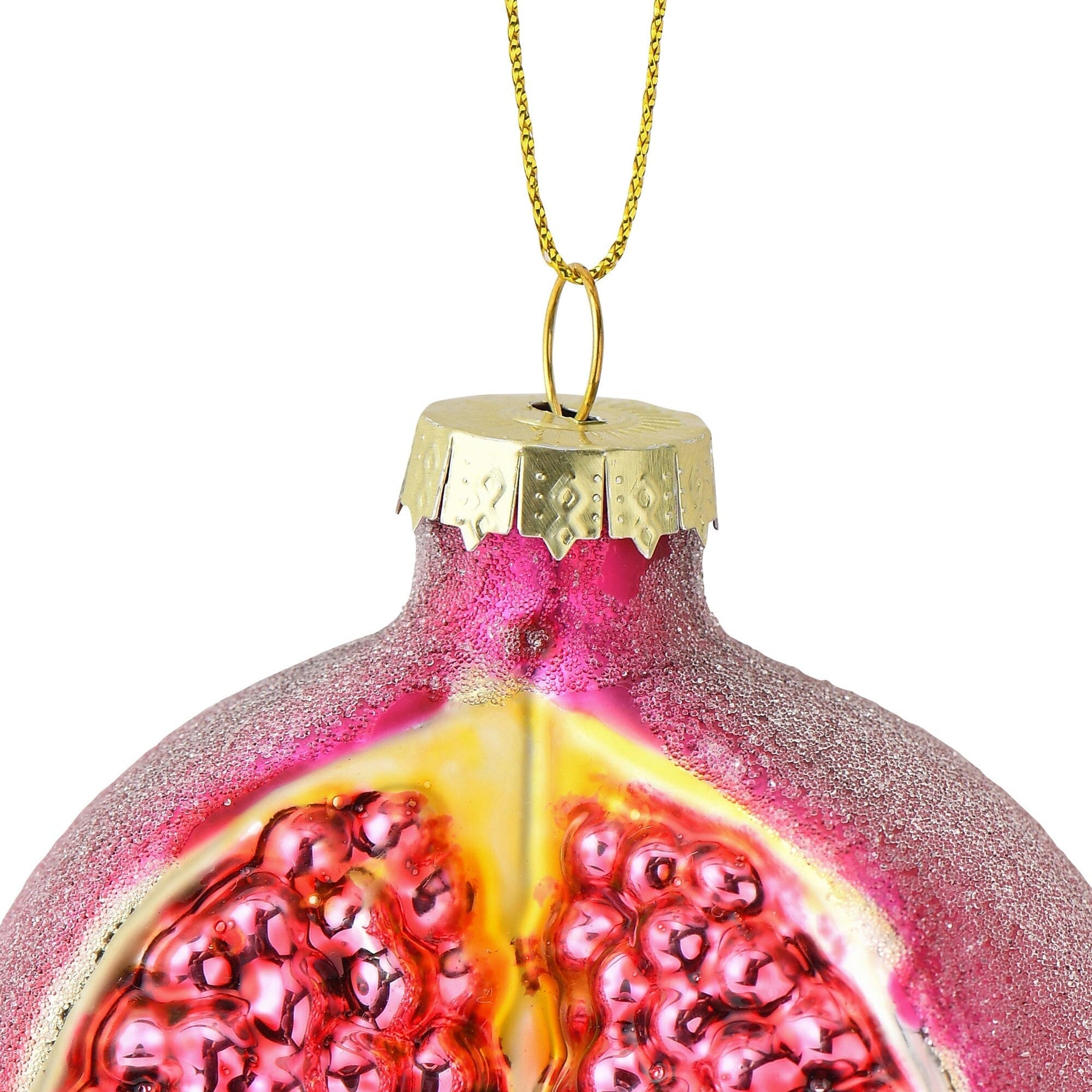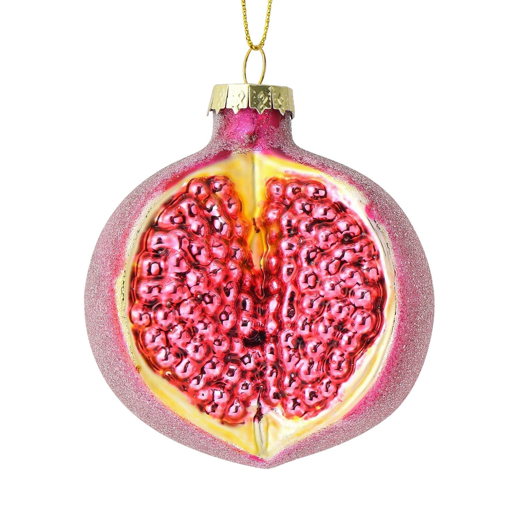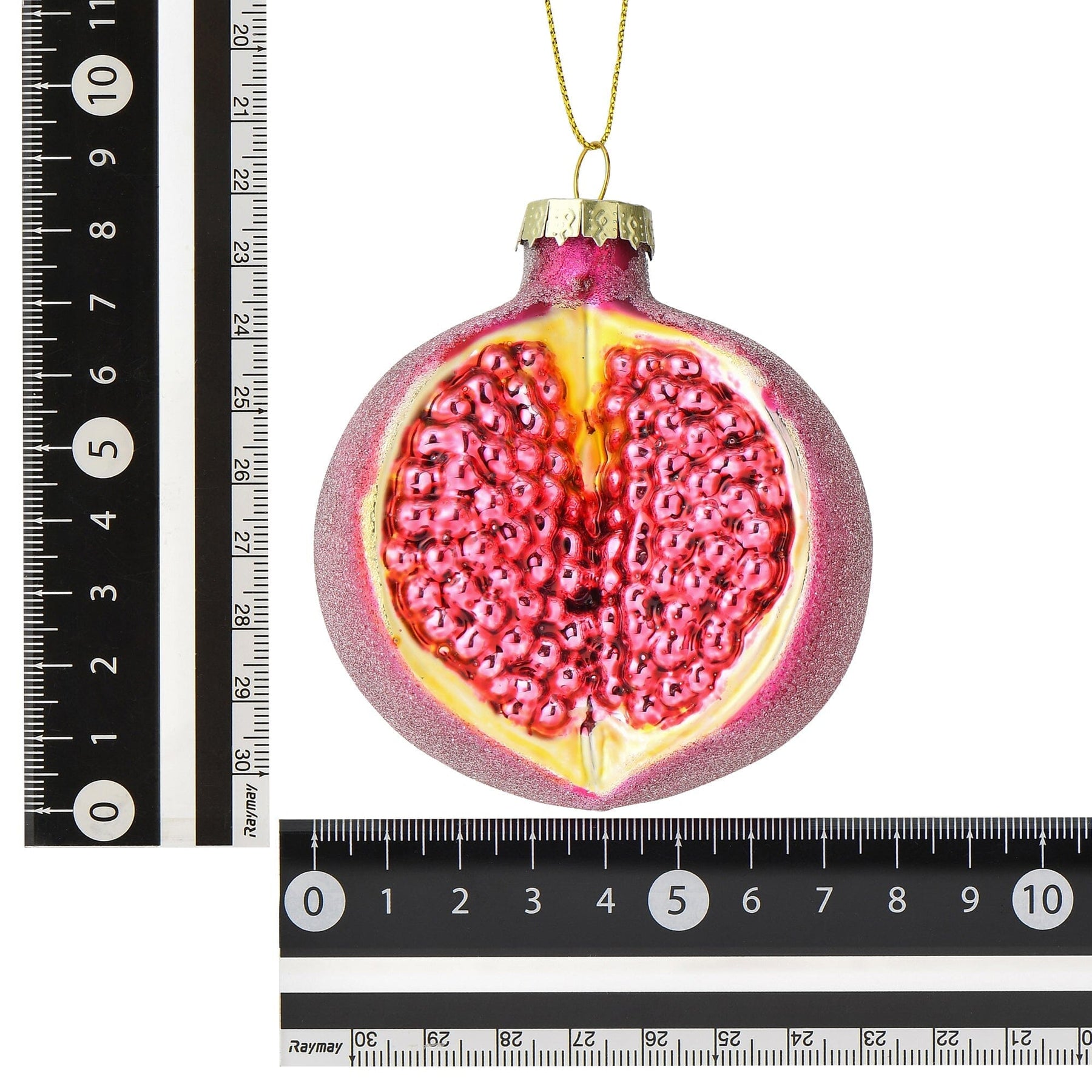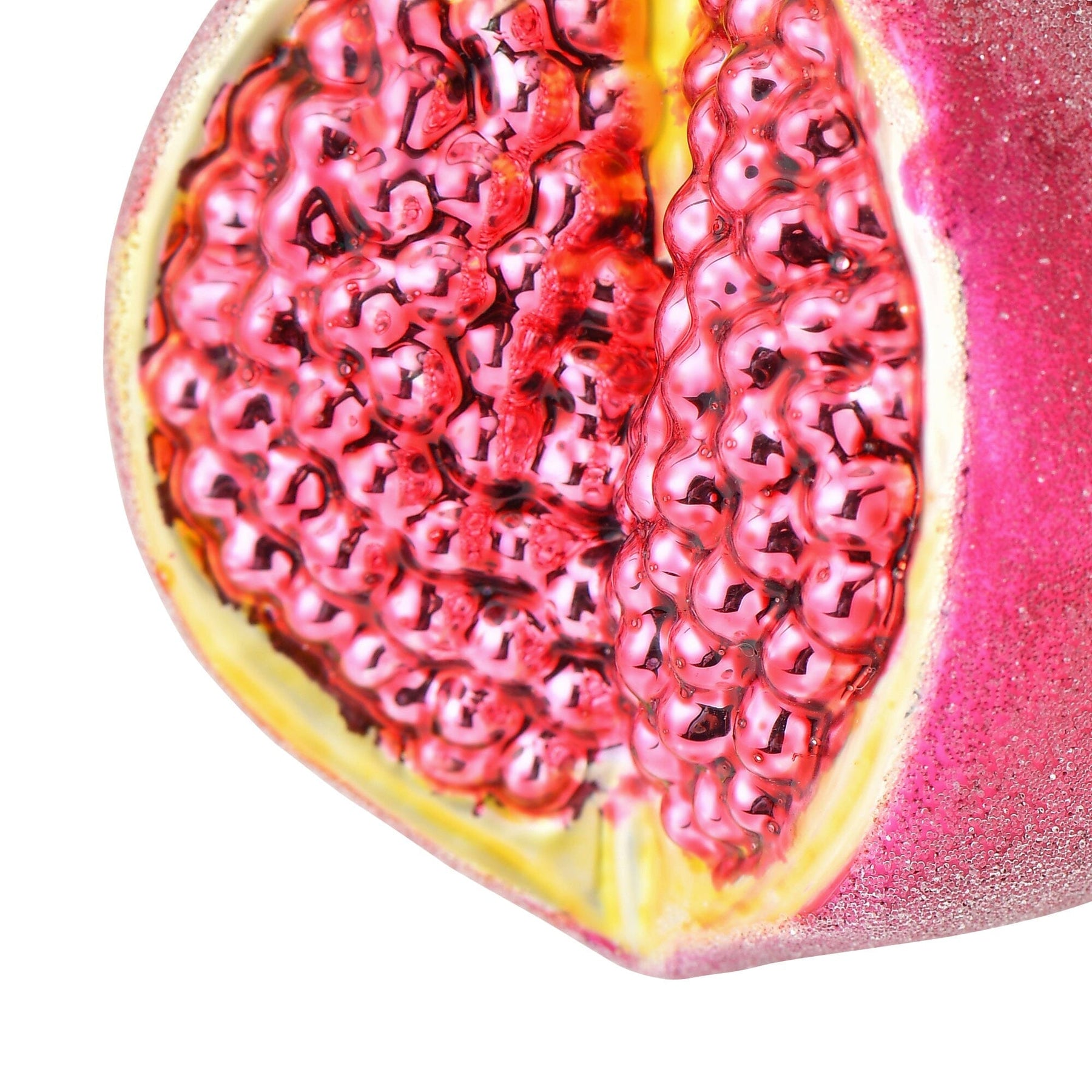 This is a realistic glass ornament with a pomegranate motif.It is cute to mix and match it with other fruit motifs in the series.