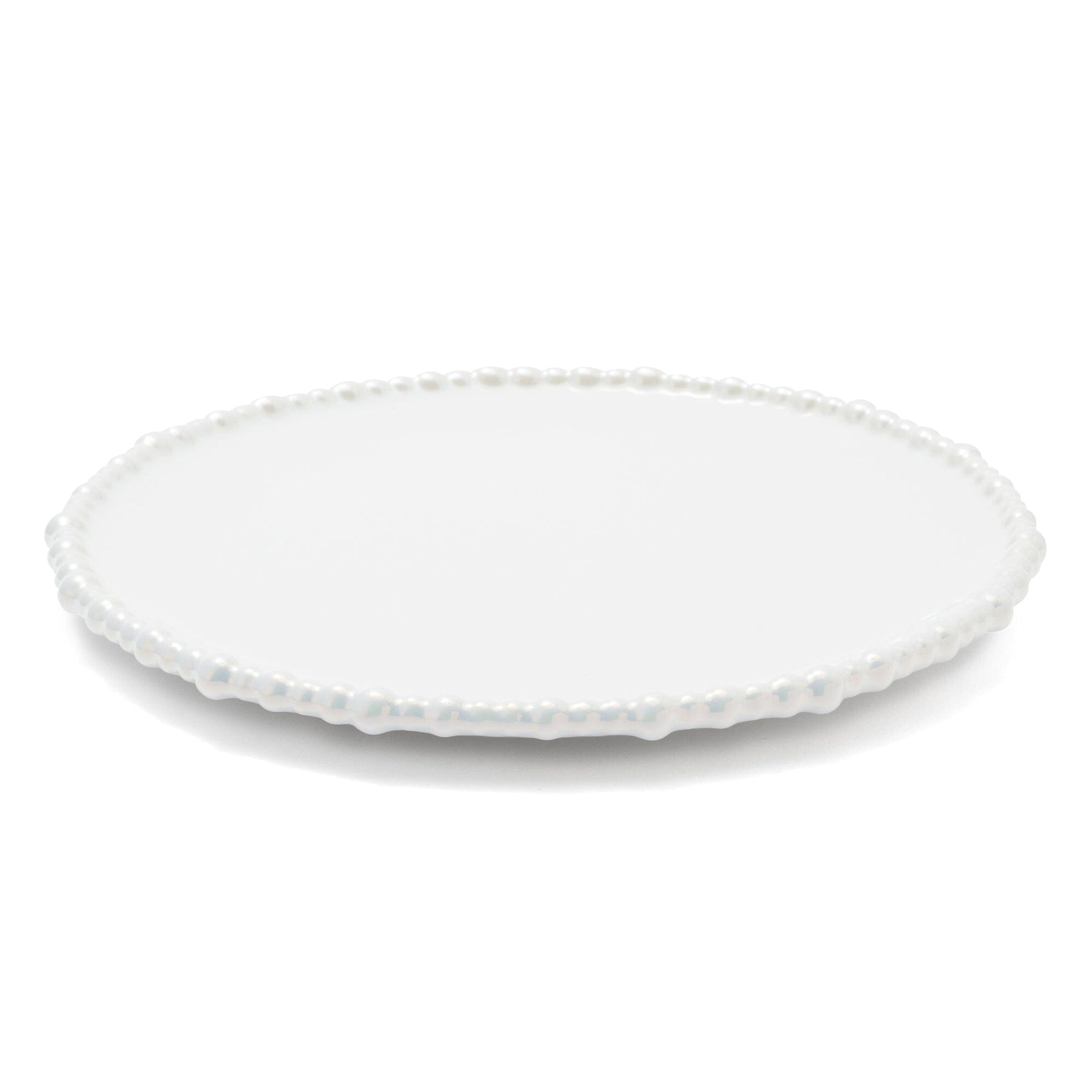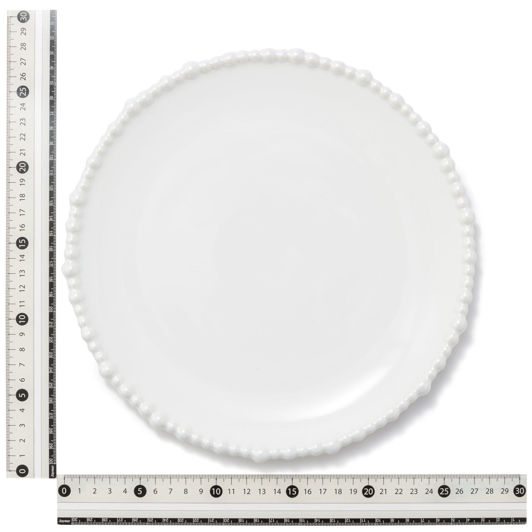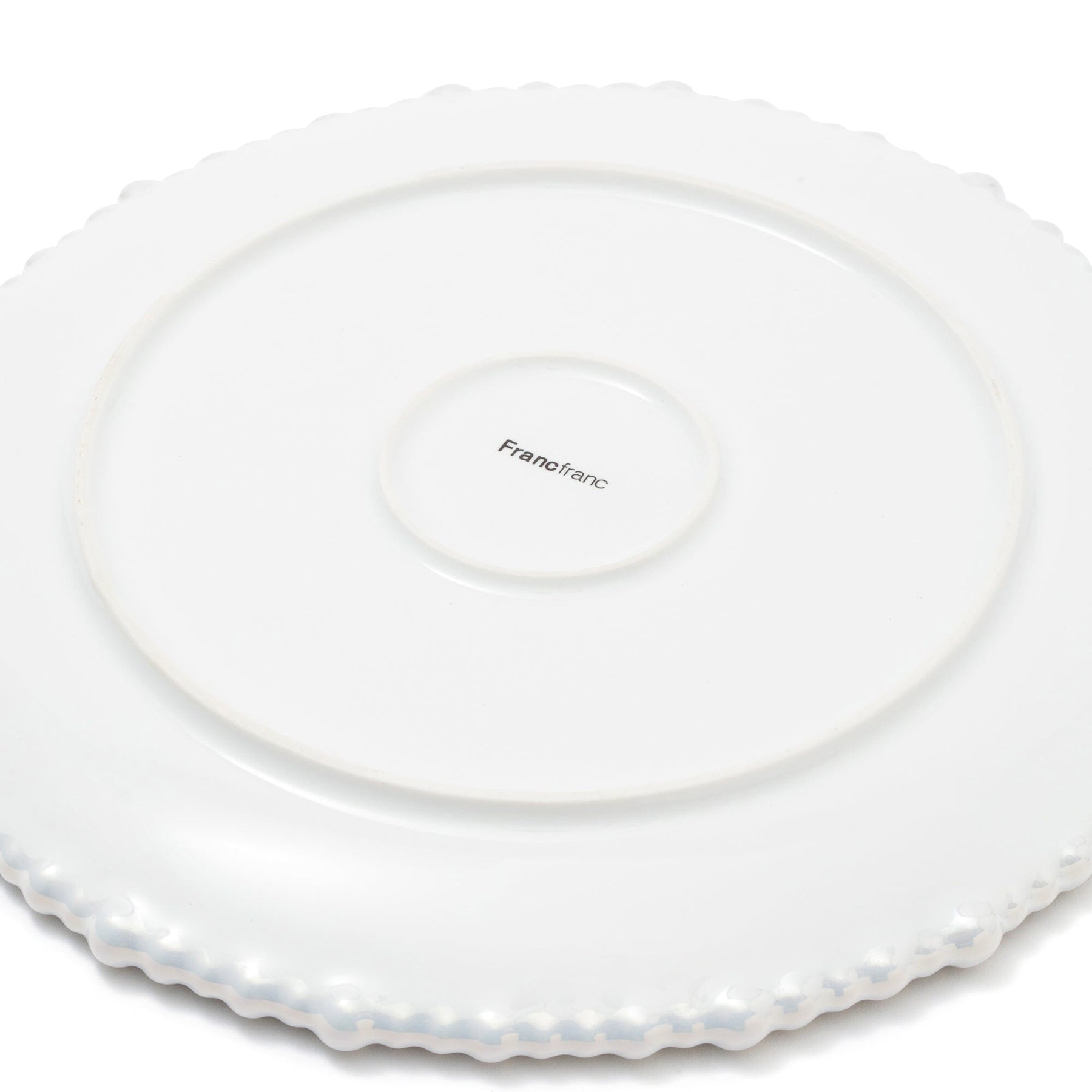 A plate decorated with randomly sized pearls on the rim.A gorgeous design that is also easy to use in everyday life.