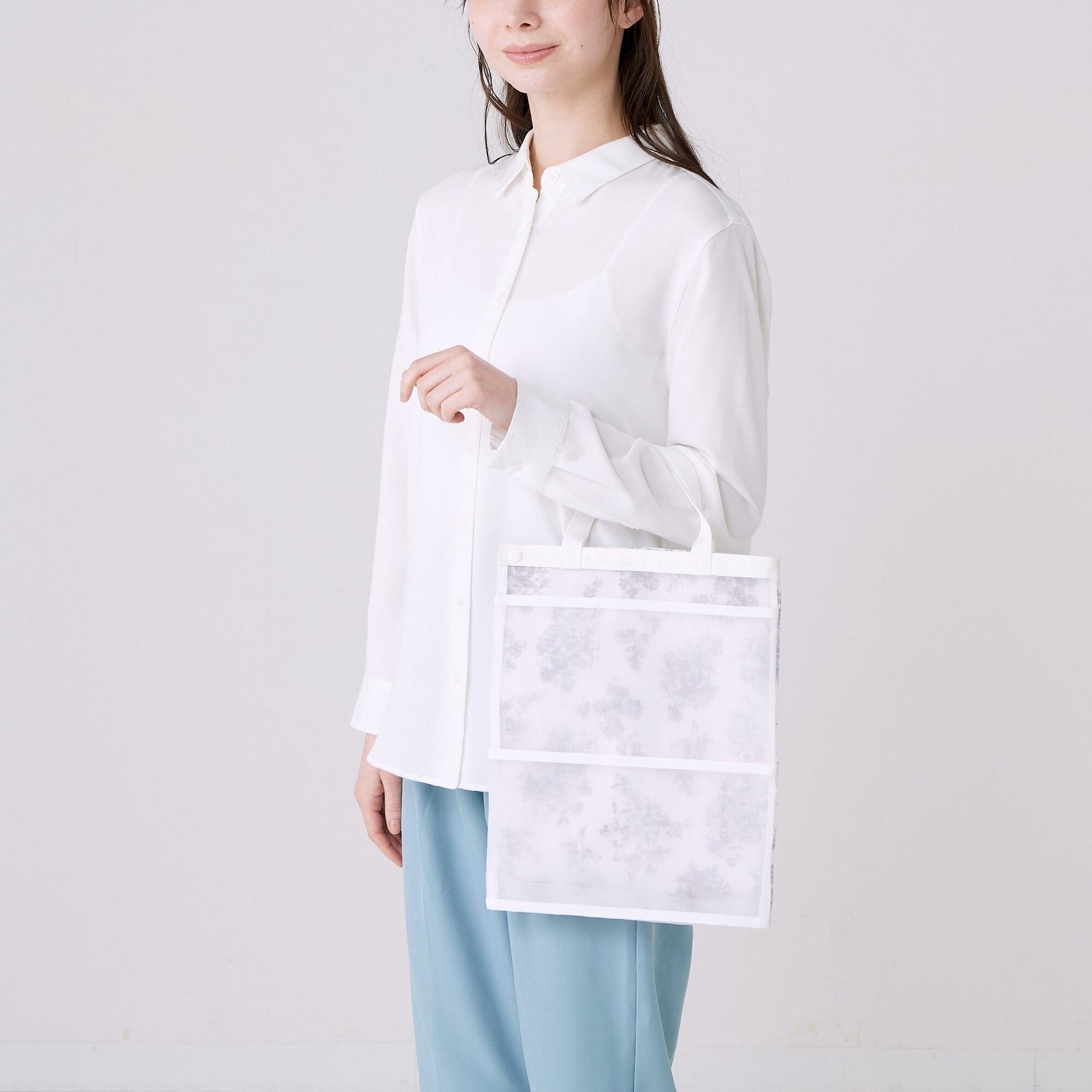 This vertical bag-in-bag can hold A4 notebooks and clear files.