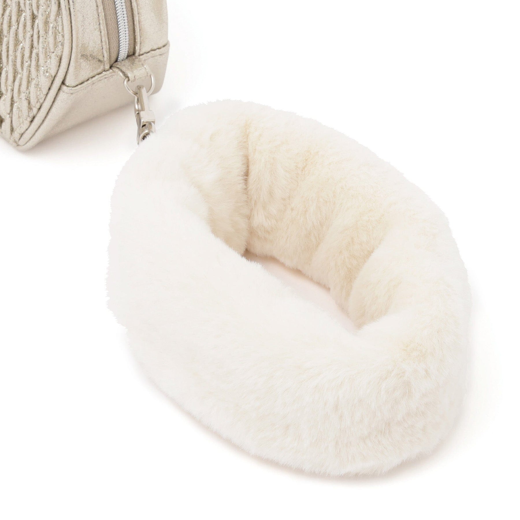 Material: Outer: Synthetic leather, Lining: Polyester, Handle and Fur: Polyester, Accessories: Zinc alloy, iron, and synthetic leather