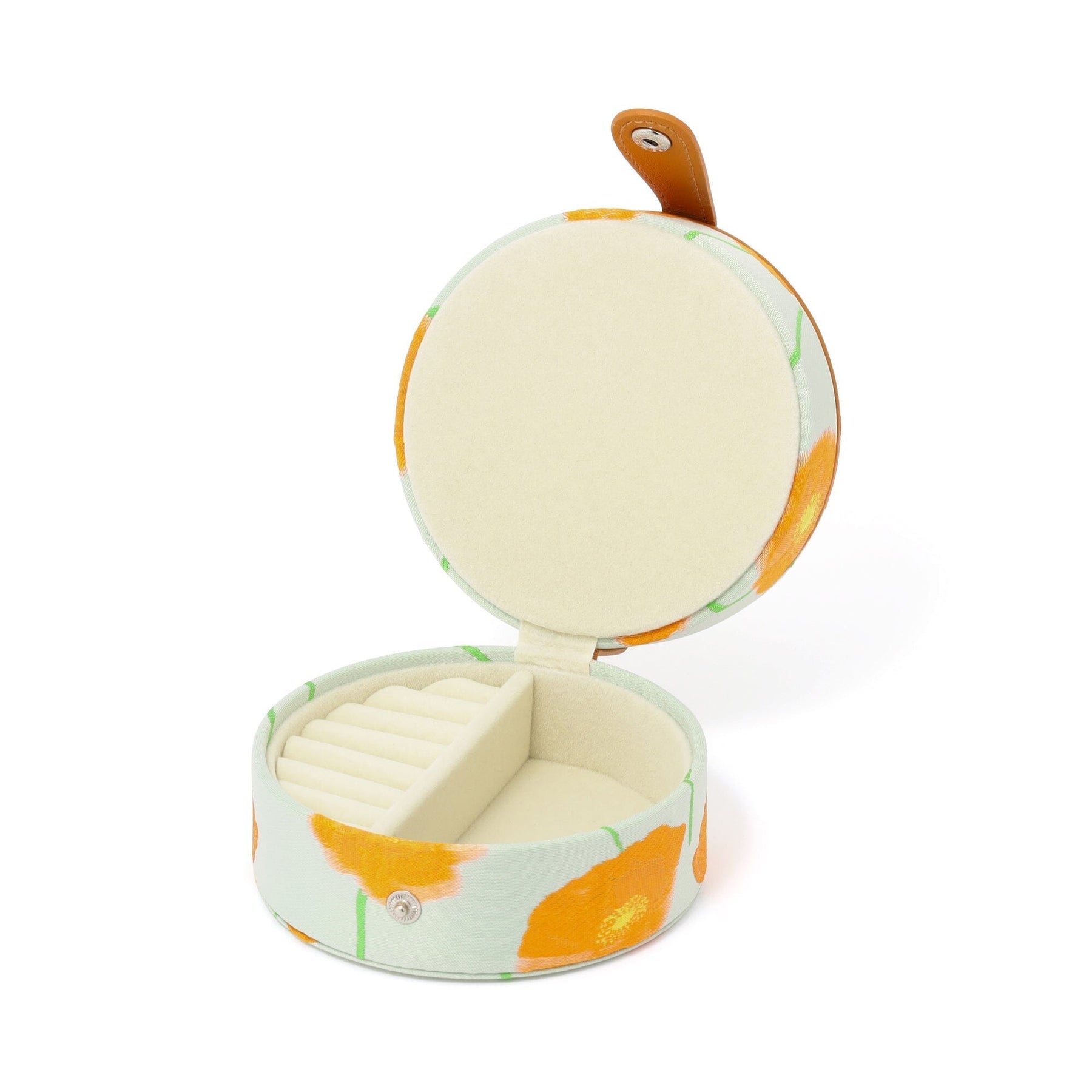 This jacquard jewelry case features a gorgeous poppy design.