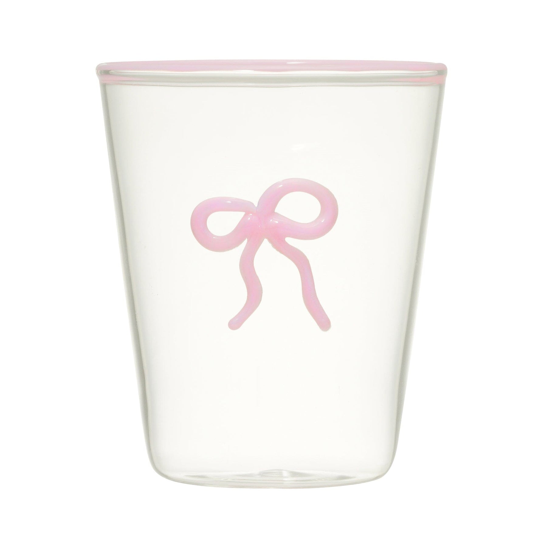 A simple tumbler decorated with a plump ribbon.The sharp shape of the glass and the sweet ribbon create an exquisite balance. Each piece is handmade.