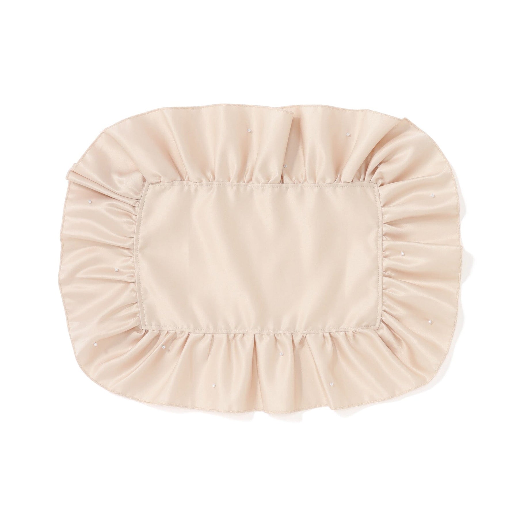 This lunch mat sparkles with small pearls.The wide, soft ruffles and lustrous fabric enhance its natural cuteness, adding a touch of glamour to any dining table.