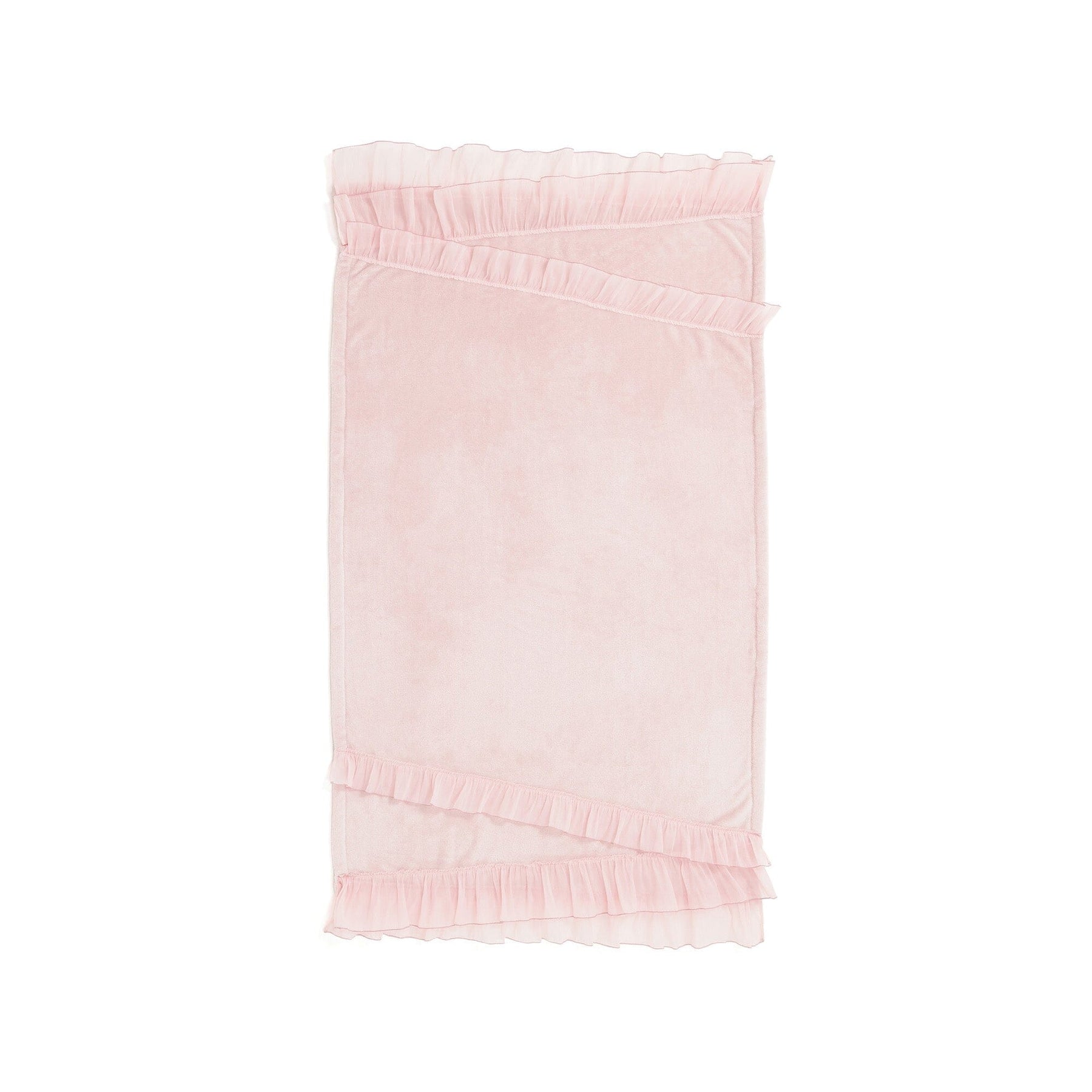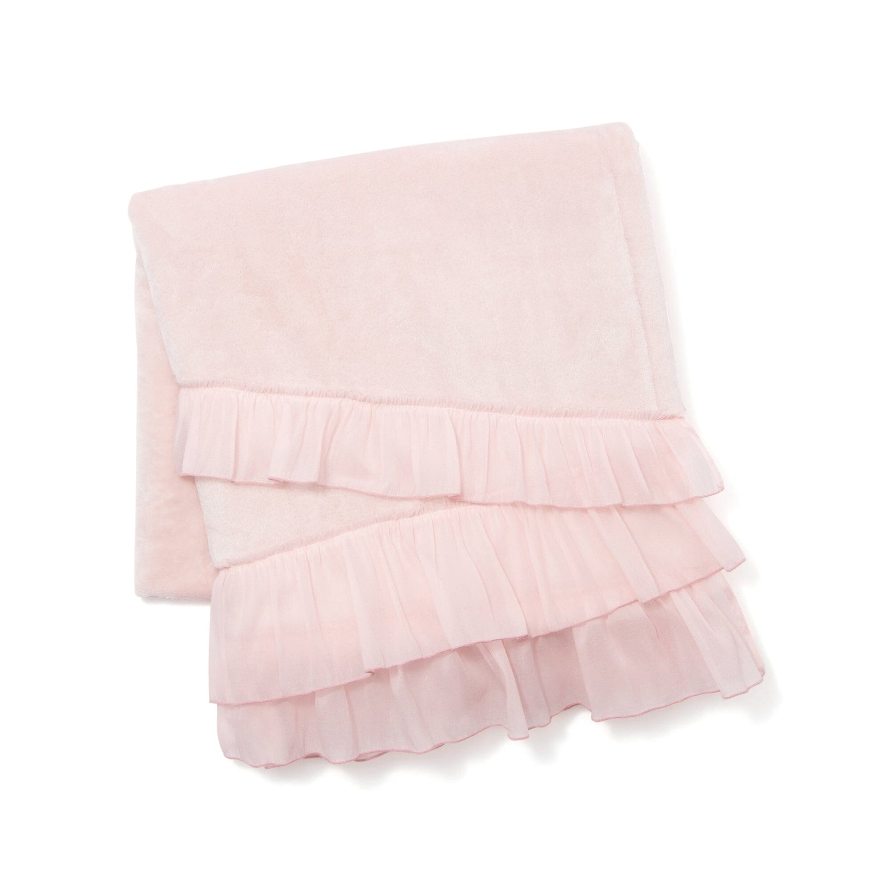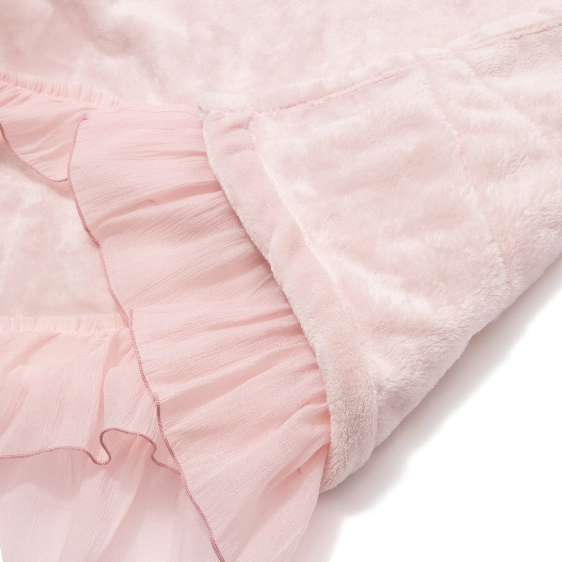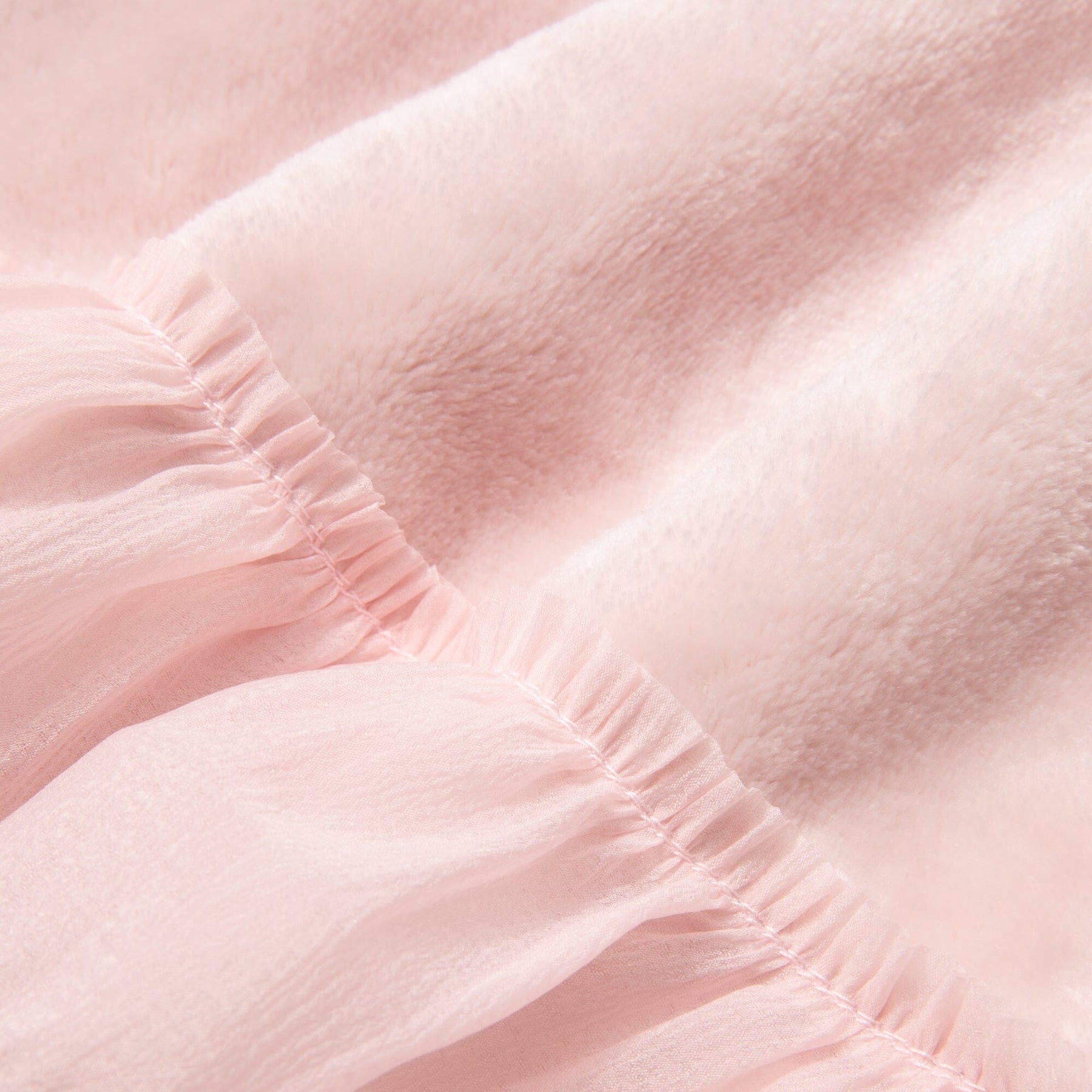 This throw (lap blanket) is made of smooth microfiber fabric with soft organza ruffles.