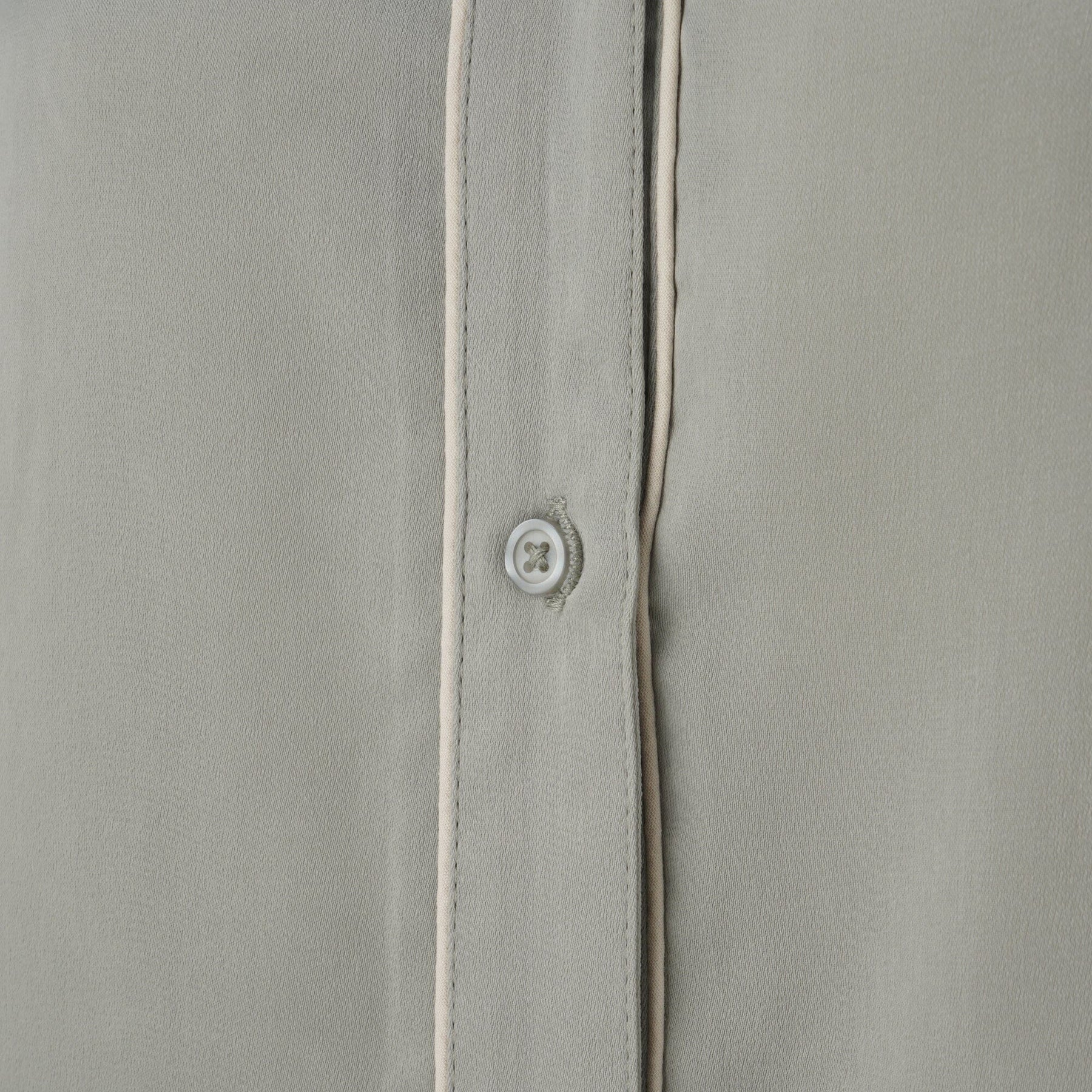 The gentle mint green coloring creates a relaxed mood. The puff sleeves and piping color scheme give the design an appealing, understated femininity.