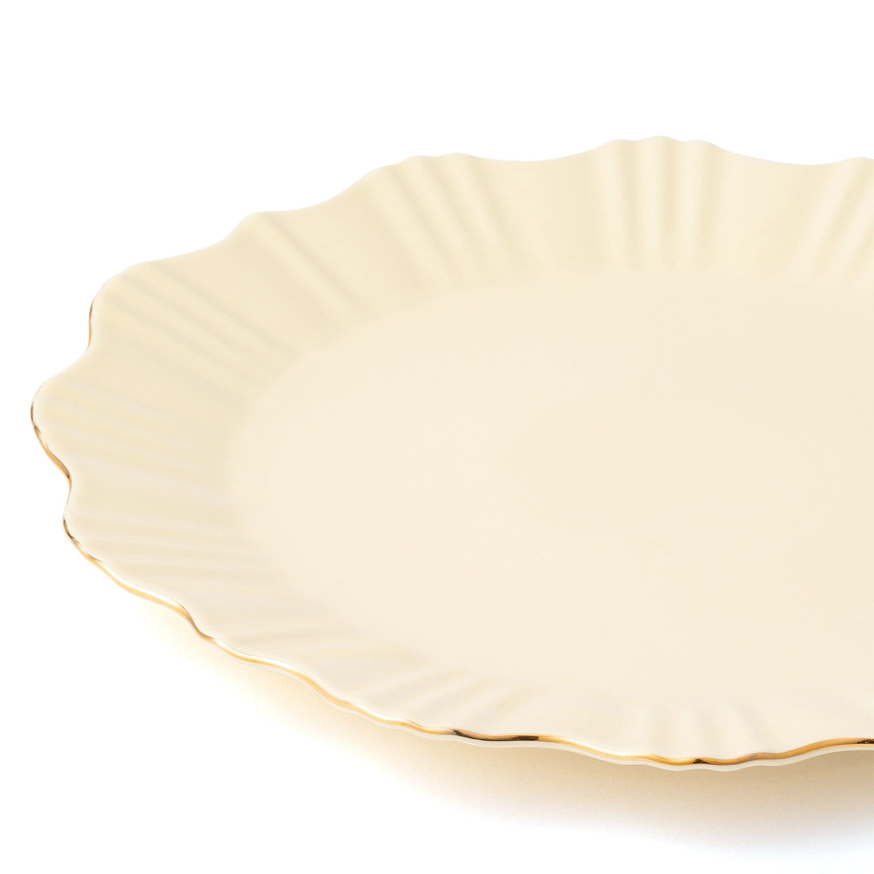 This plate features a petal-like scalloped design.