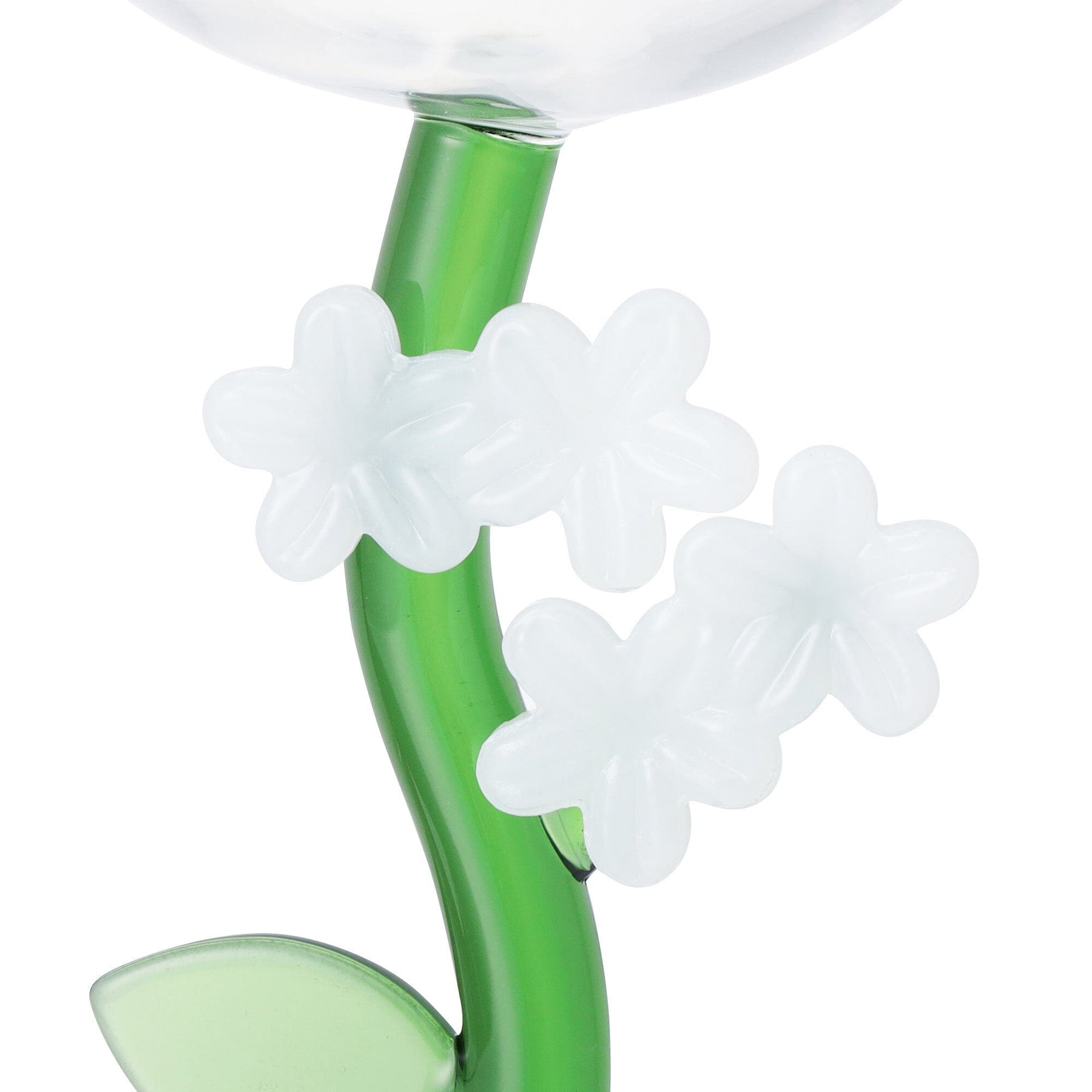 The stem is decorated with a three-dimensional glass flower, making it a great accent for your table setting.