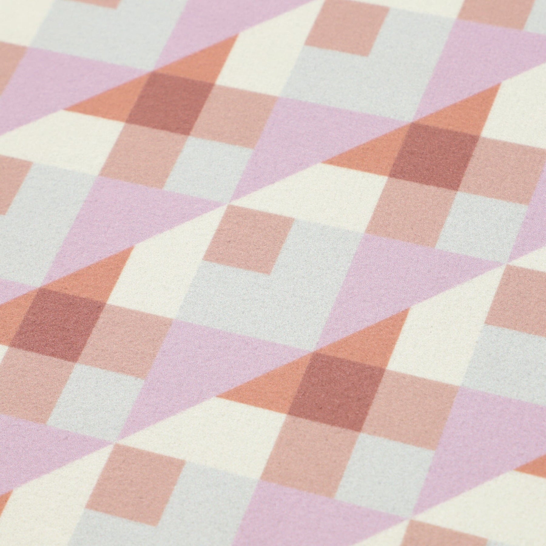 The design features delicate patterns and colors not possible with pile fabrics.