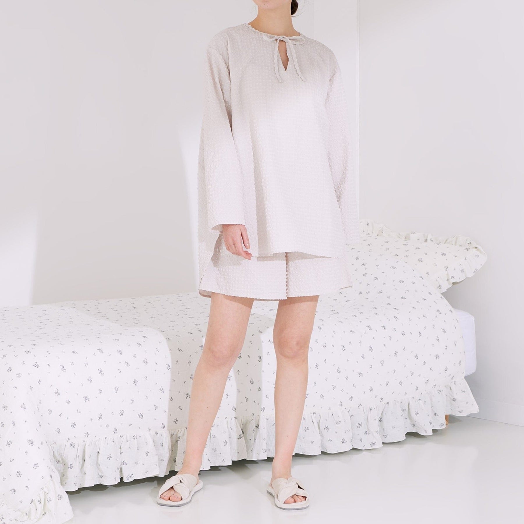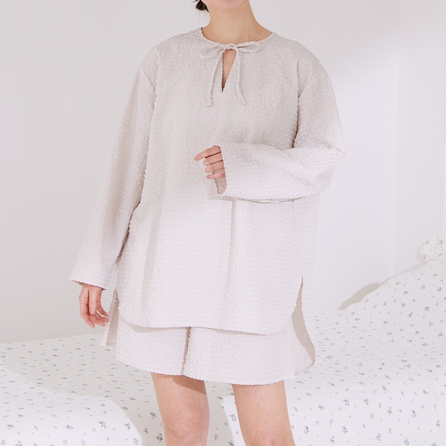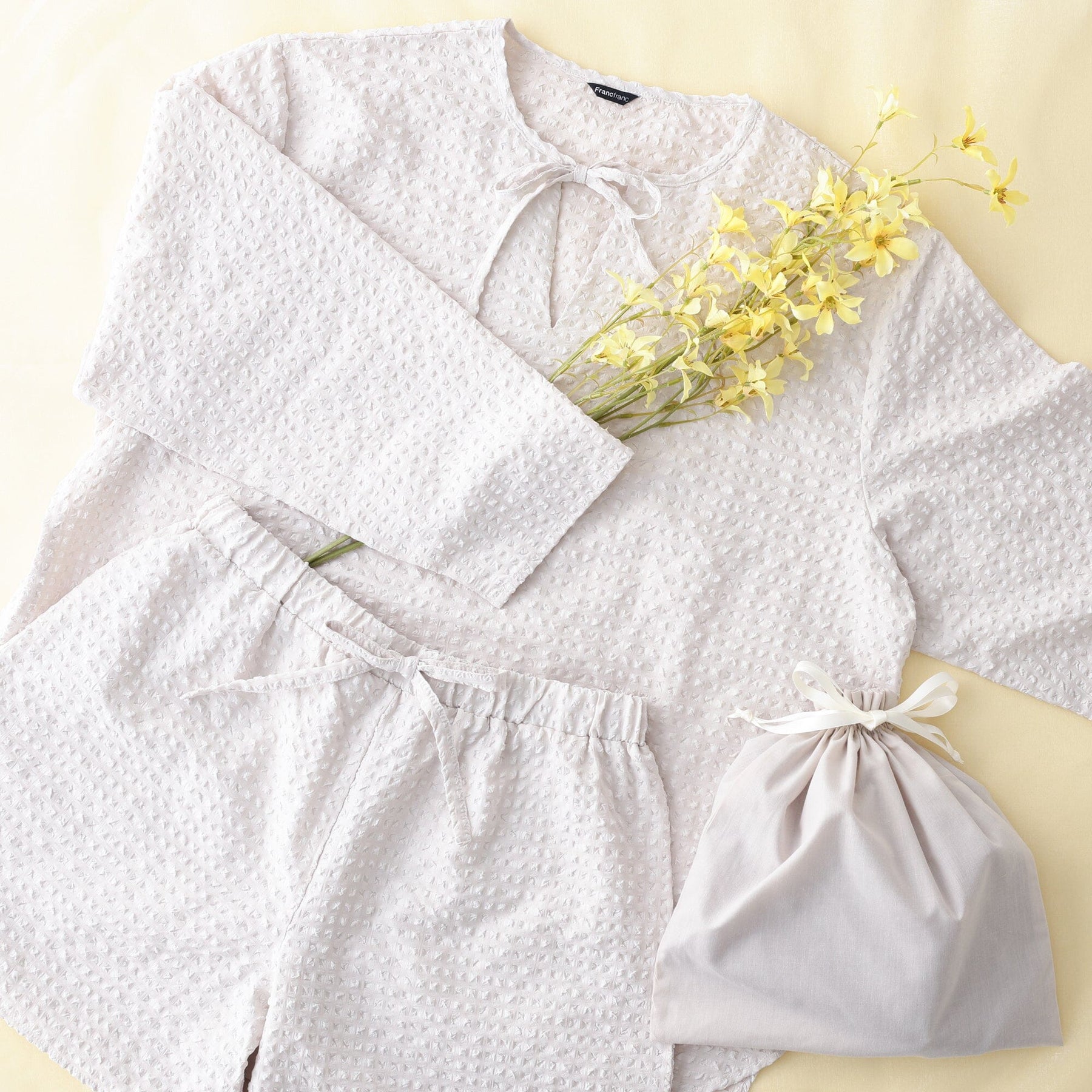 These travel pajamas are made from lightweight, quick-drying seersucker fabric.The wrinkle-resistant material makes them perfect for folding up compactly and taking with you on your travels.