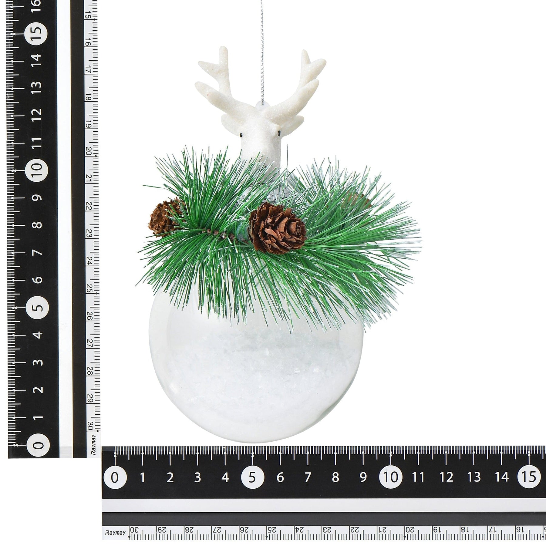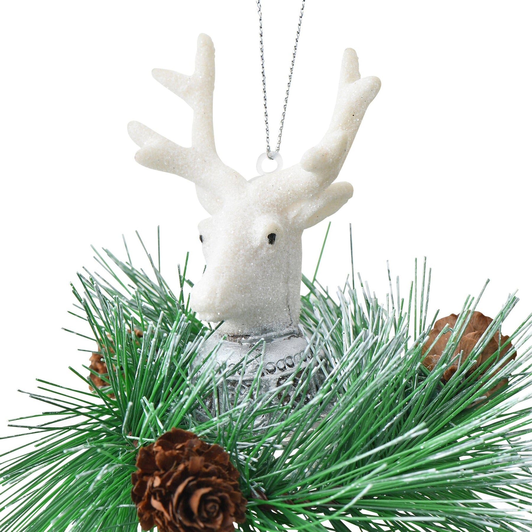 The combination of reindeer and wreath is a fresh ornament that will accent your tree.