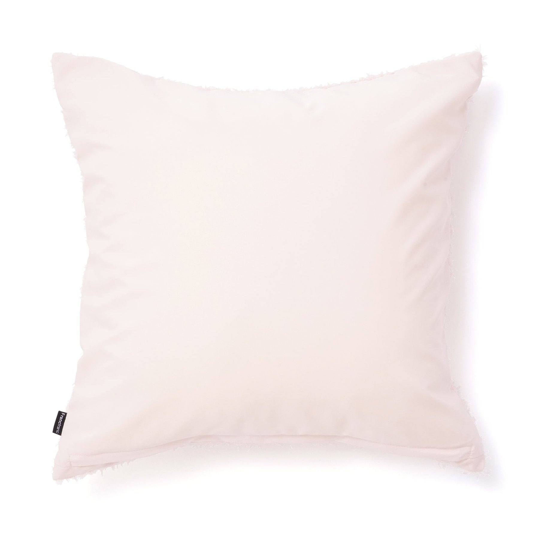 This cushion cover features a soft pink and white color scheme.