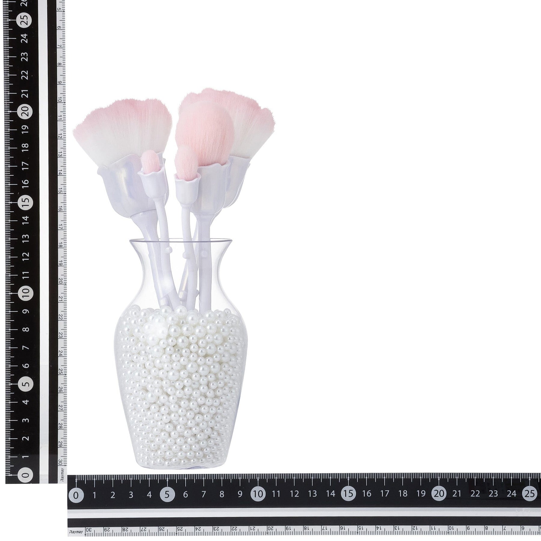 The elegant, vase-shaped clear case contains five makeup brushes that will greatly expand the scope of your makeup.