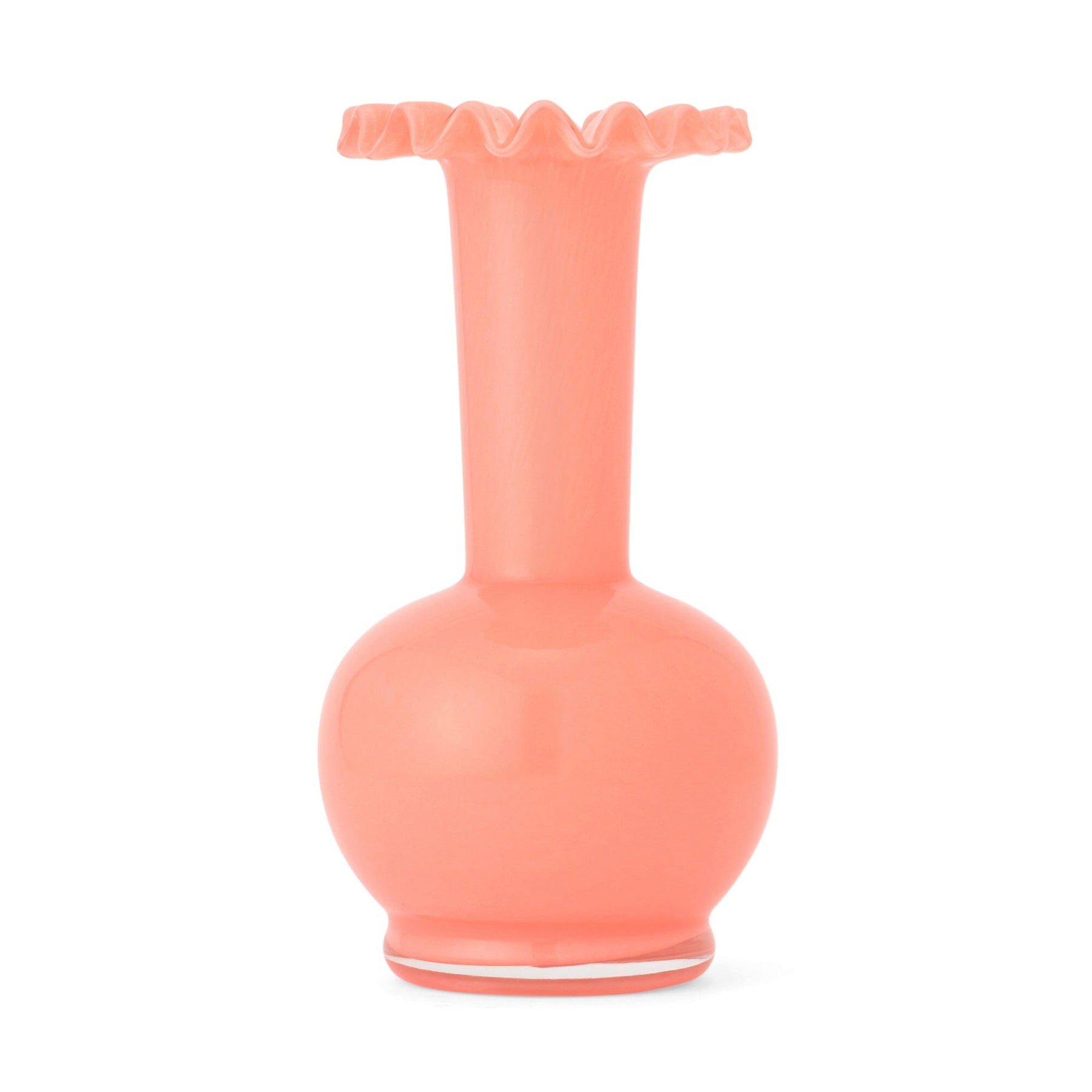This glass flower vase features cute ruffles.The vibrant color will add a wonderful accent to your interior.