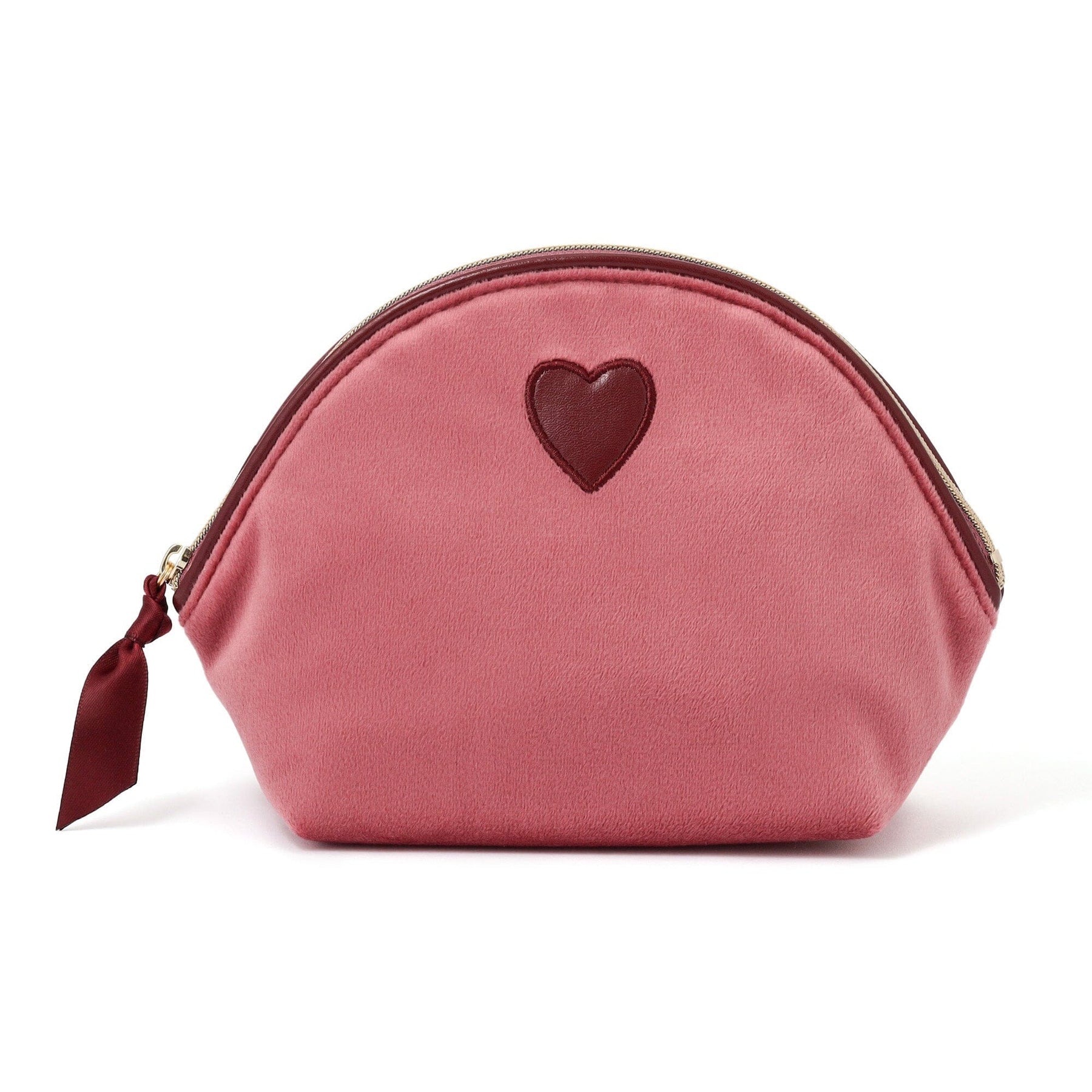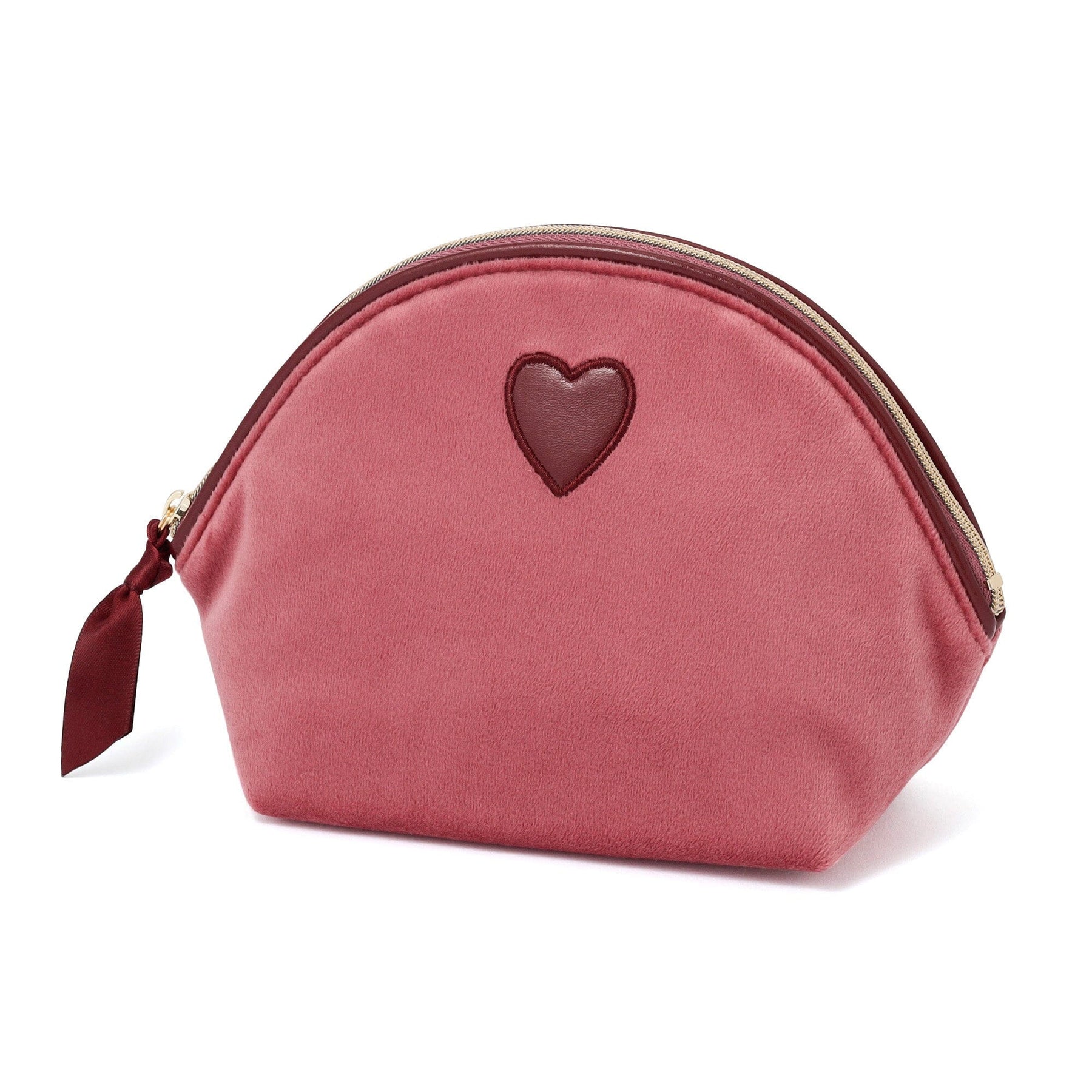 This pouch's charming feature is its small heart-shaped patch.Its simple, easy-to-use, and rounded shape makes it convenient for carrying your everyday cosmetics.