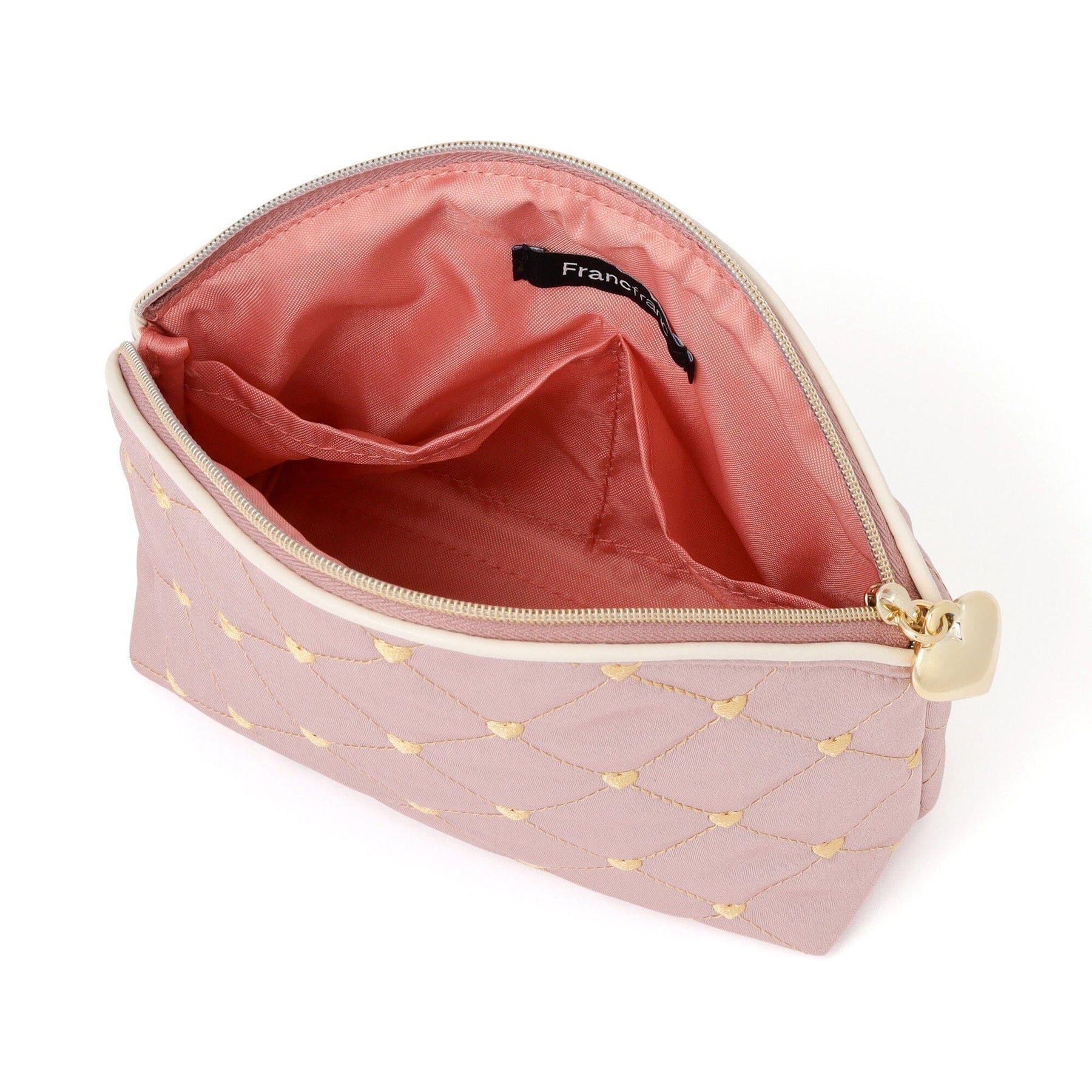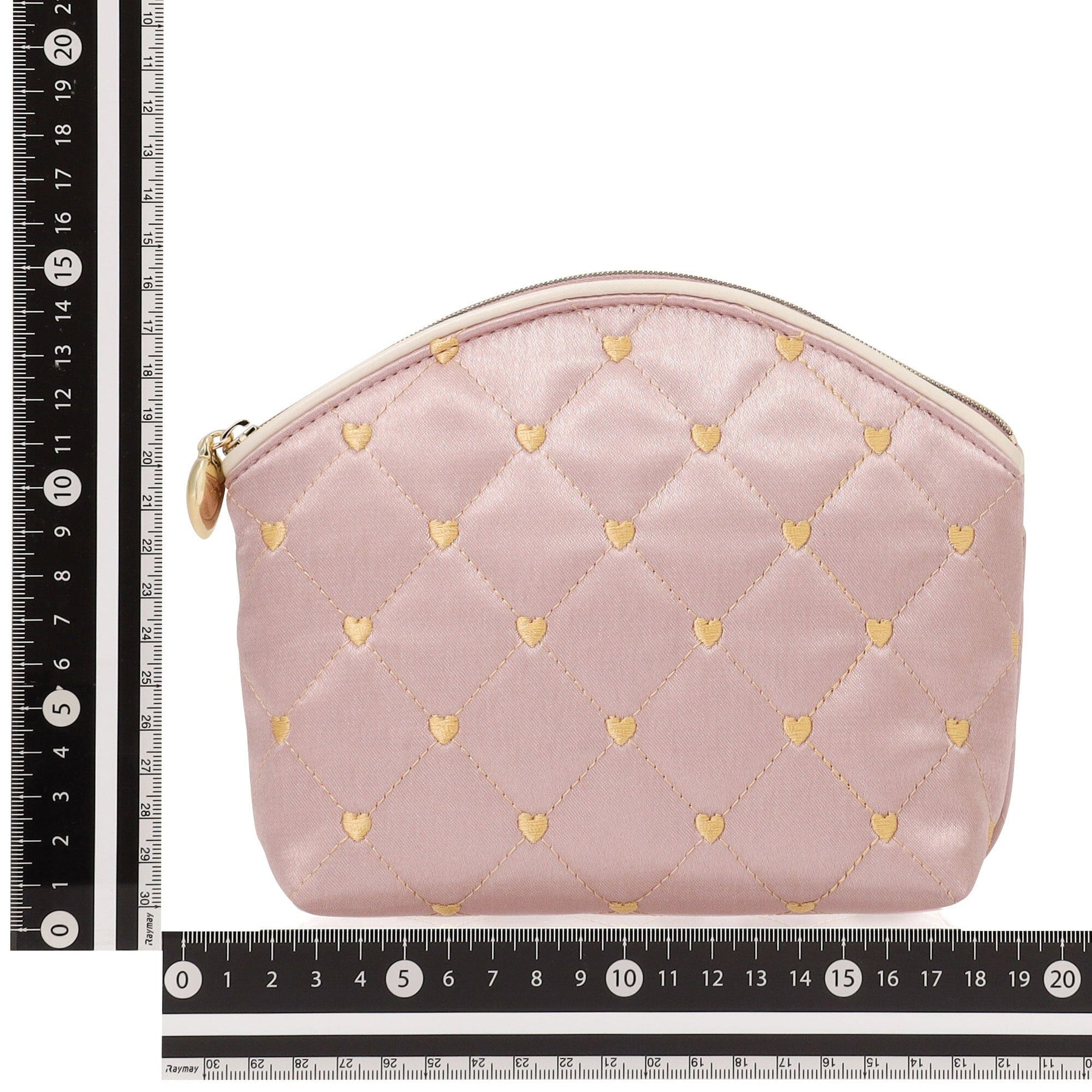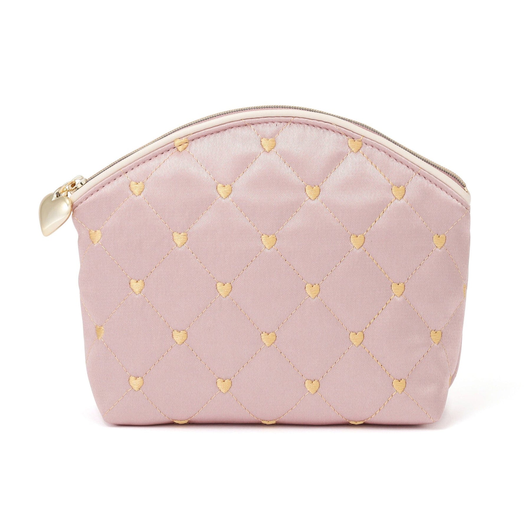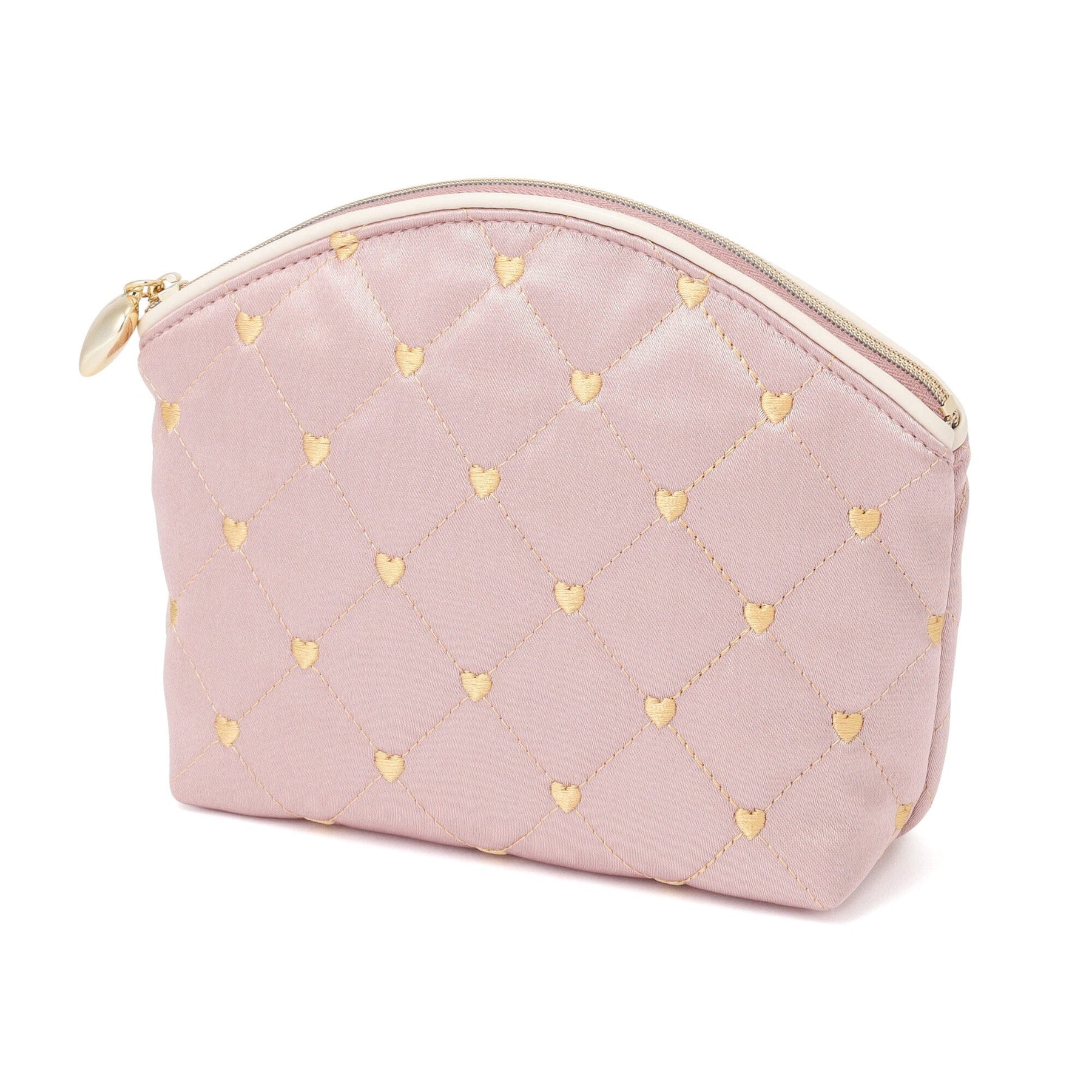 Heart Stitch Satin Pouch Large Light Pink