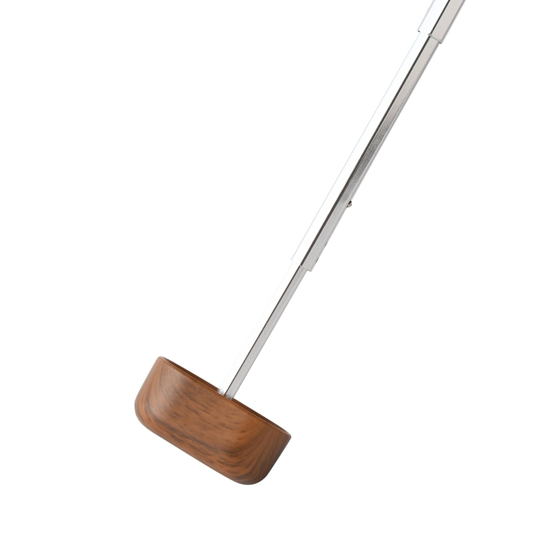 The sophisticated, muted colors and wooden handle create a luxurious impression.