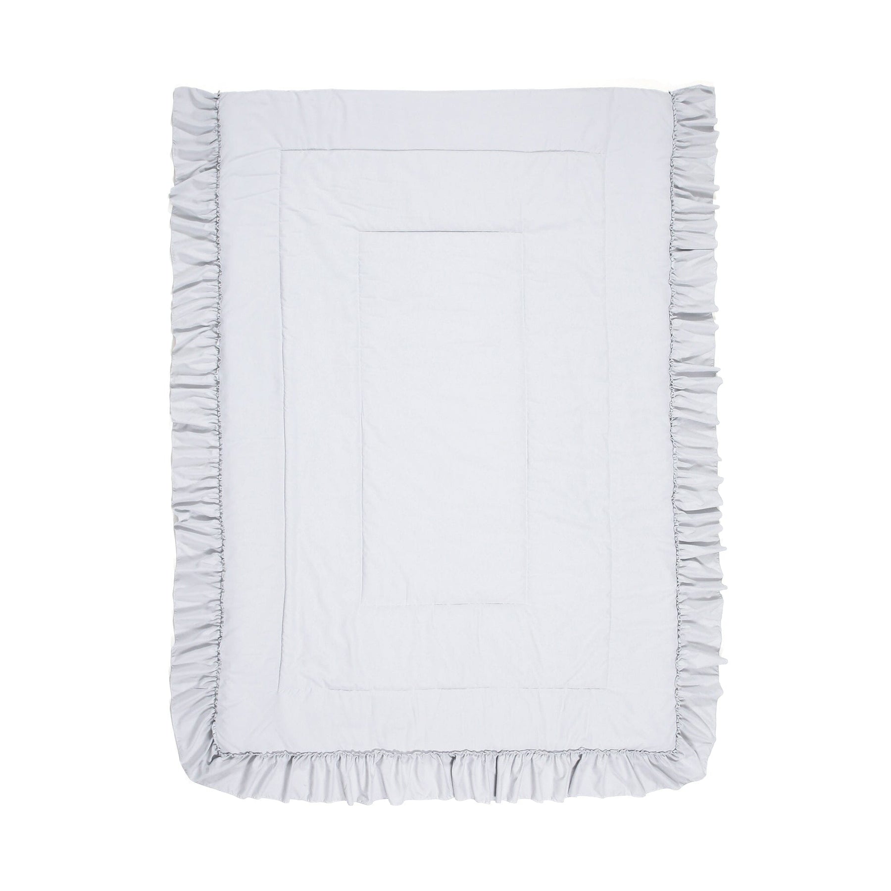 Size: W1800×D2000×H20mm Length of ruffles: approx. 15cmMaterial: Front: 100% polyester, Back: 95% rayon, 5% polyurethane, Ruffles and filling: 100% polyester