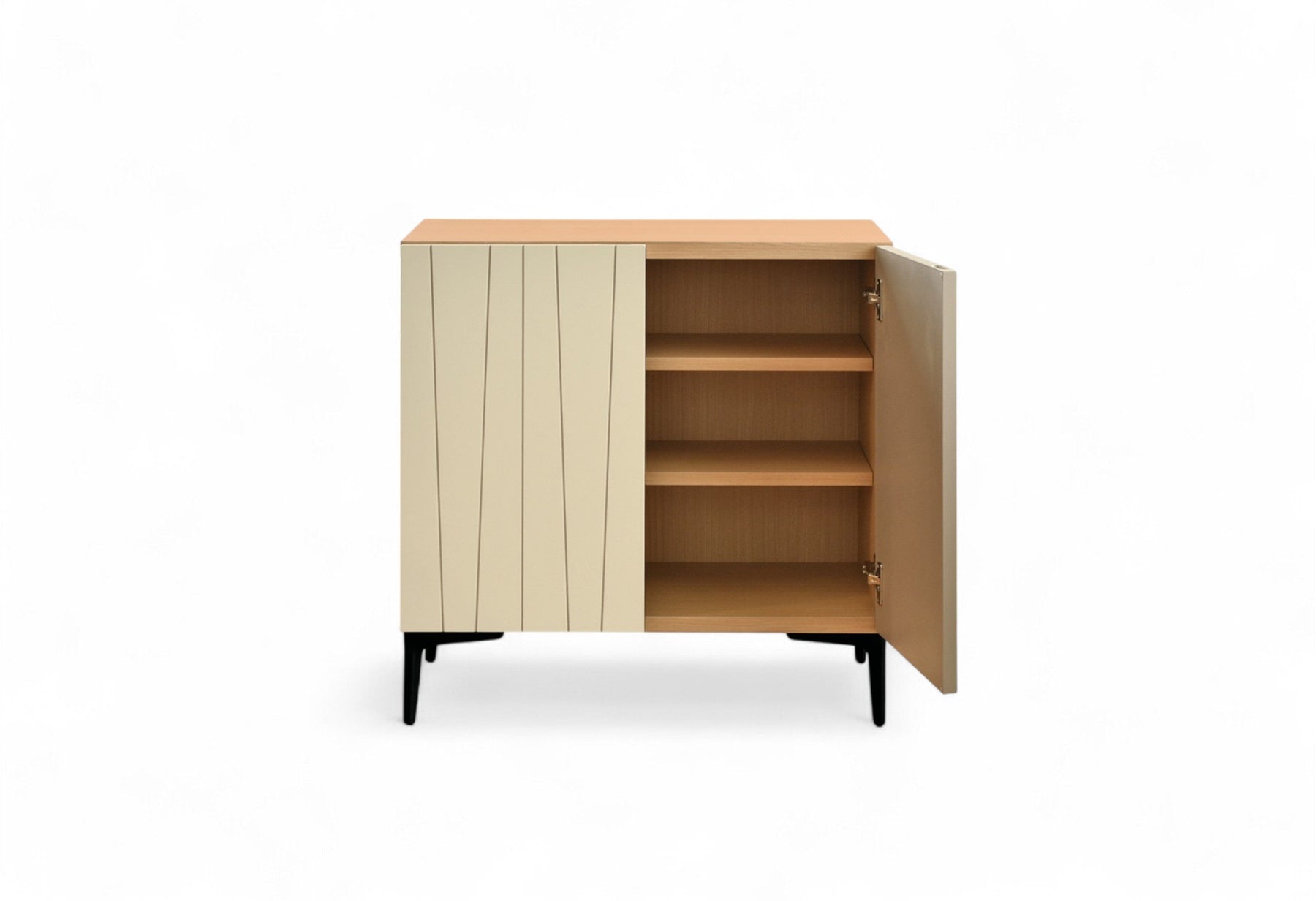 ■A sideboard with a modern and stylish impression, carved into the front panel with vertical lines. ■The inside of the main body has an adjustable shelf, providing excellent storage capacity.
