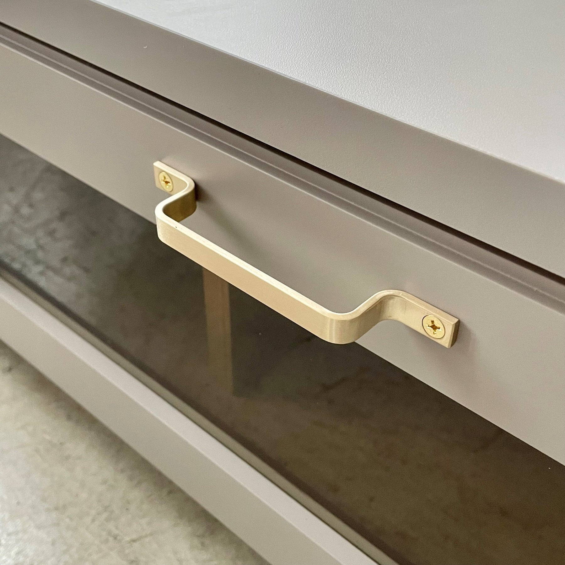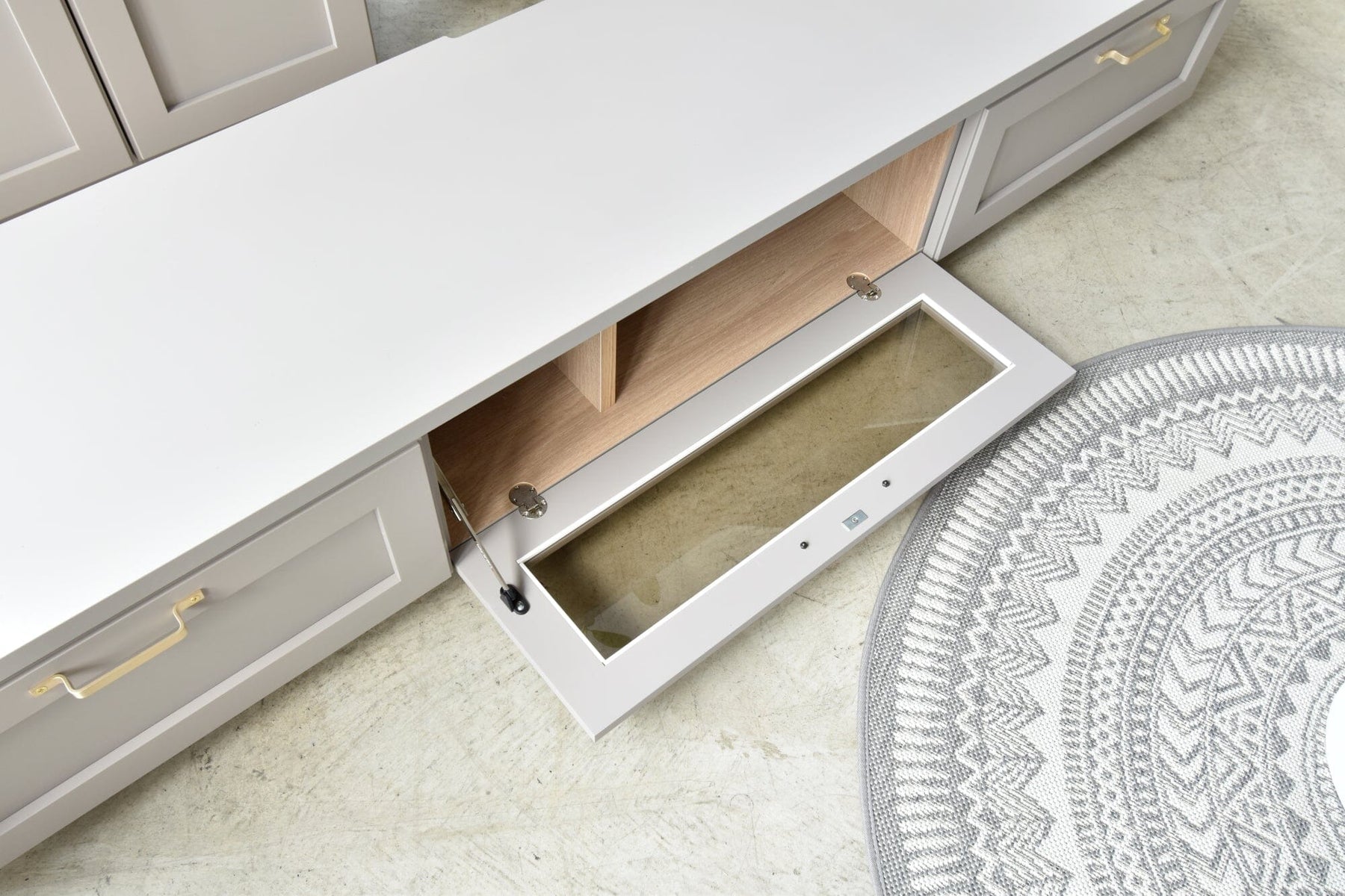 The tabletop is covered with a scratch- and stain-resistant olefin sheet. The matte finish of the body creates a high-quality space. The glass has a subtle brown tint, creating an elegant and modern atmosphere.