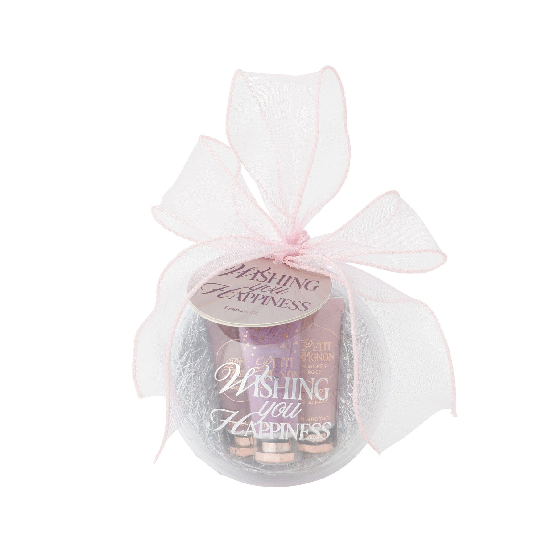This hand cream set comes in a cute ornament-like package and comes in three different scents.Contains moisturizing ingredients to leave your hands feeling smooth.
