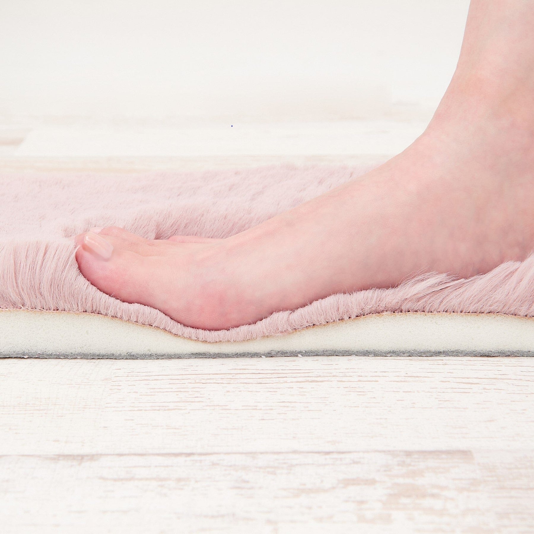 The hugely popular Mitis rug, with its rabbit fur-like feel, is made with a 1.8cm thick memory foam filling.