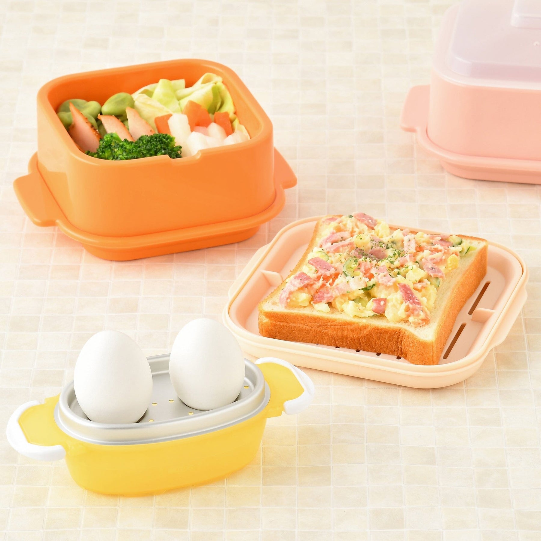 ■Heating times may vary depending on the microwave manufacturer and model, seasonal temperature, and the frozen state of the material. Therefore, shorten the heating time and monitor the food as you cook. (Please note that the heating time will vary depending on the temperature of the hot water placed in the saucer.) ■ Avoid heating oily foods as the temperature may become extremely high. ■ Do not use with soy milk, milk, or dairy products as they may boil over. ■ If you directly add strong-smelling foods or highly pigmented vegetables, an odor may be transferred or the pigment may stain the resin, but this does not affect the product's usability. ■ Keep the lid on when heating in the microwave. Take care not to be burned by the heat of the container or steam inside the container after heating. ■ Do not heat at 800W or above. ■ The recommended heating time for this product is based on 500W. Heating times will vary depending on the wattage, so adjust accordingly. ■ Do not place near an open flame. ■ Check the microwave's label and instruction manual before use. ■ Do not use the microwave's automatic heating or automatic heating functions. Overheating may cause the container to deform. ■ Never heat the container empty. The container may deform or dissolve.