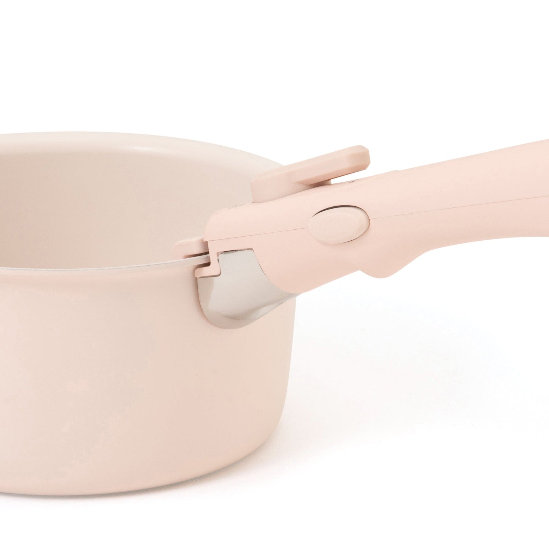 This handy 5-piece pot and pan set has detachable handles that allow them to be stacked for storage even in limited space.