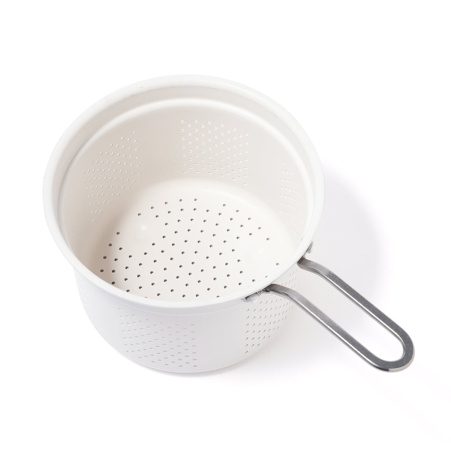 The strainer is convenient for frying foods and boiling noodles. It also makes draining water easy.