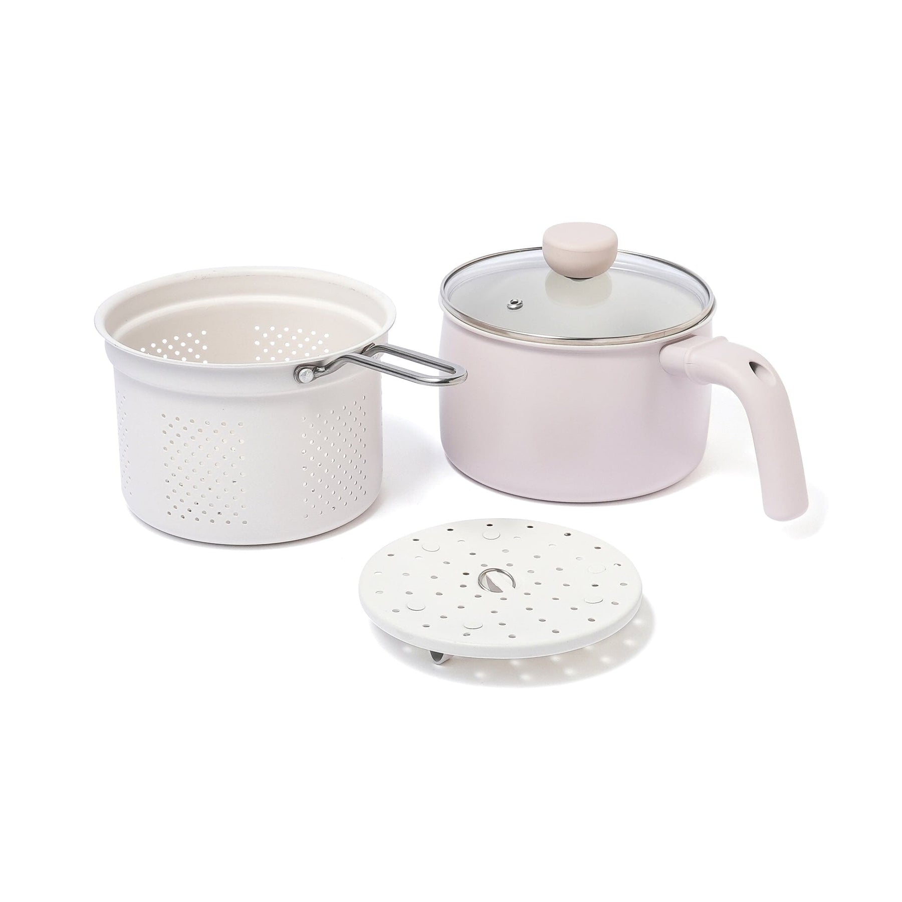 This 4-piece multi-pot set includes a pot, strainer, steam plate, and glass lid.