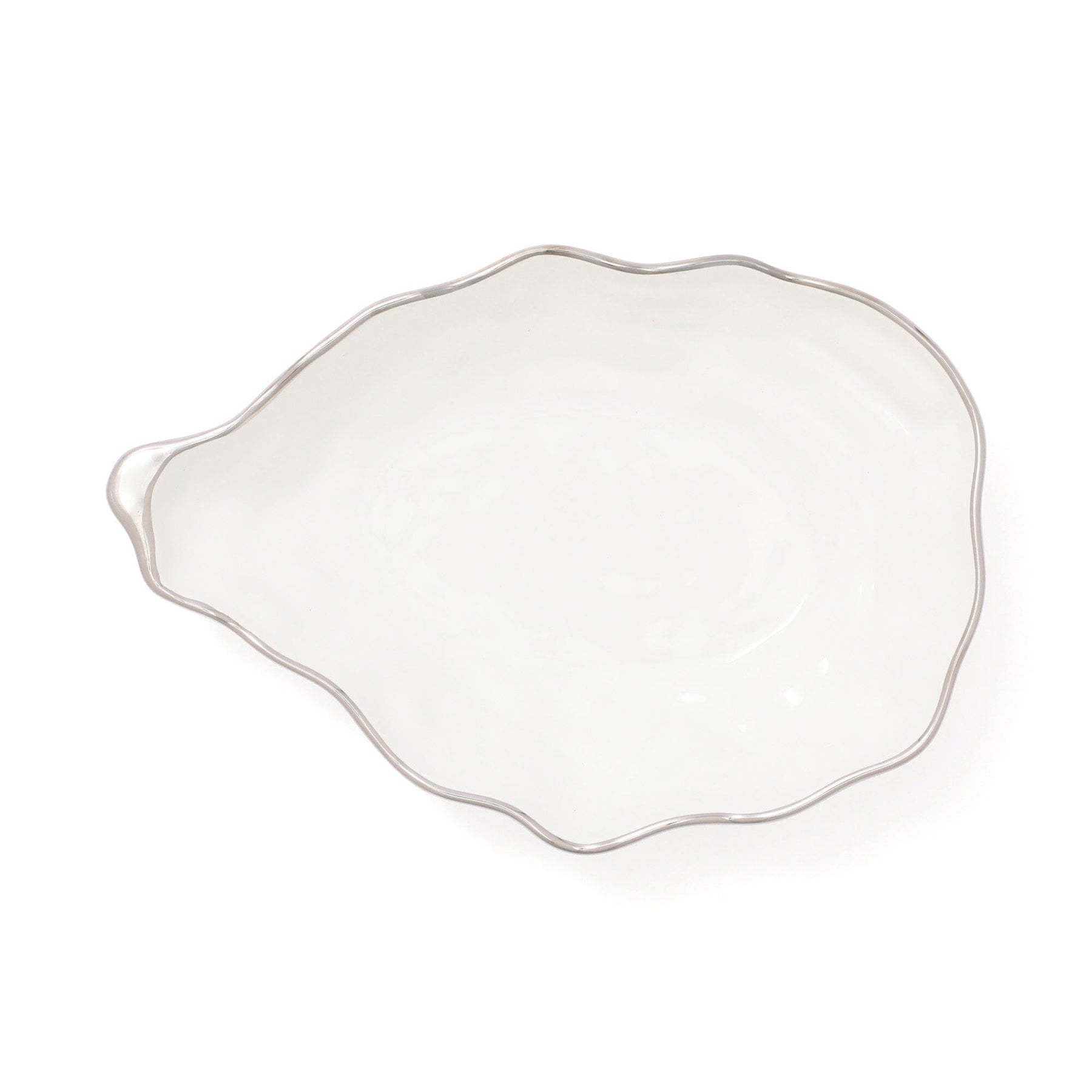The intentionally uneven design creates a realistic shell shape. The silver accents on the rim add a touch of elegance.