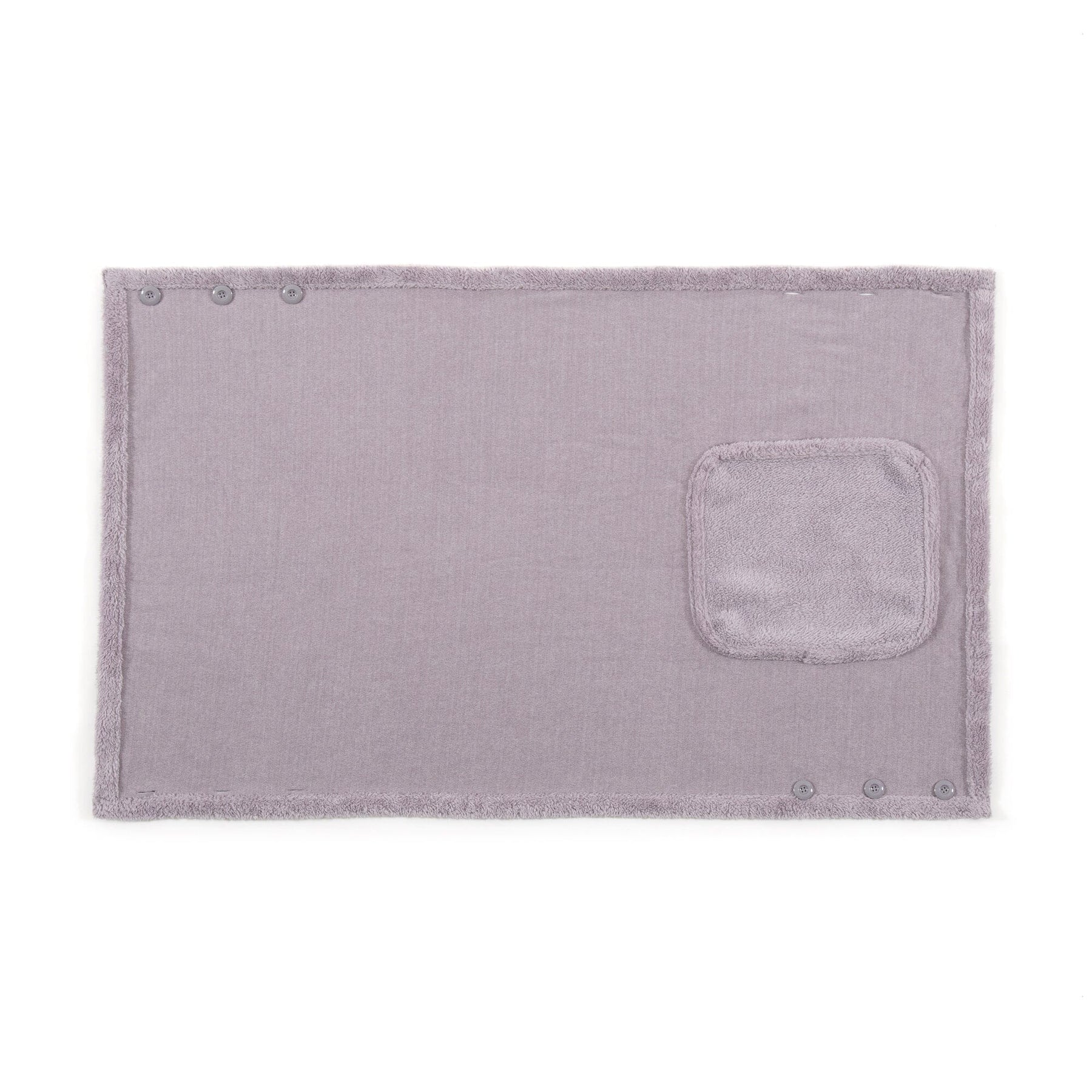 This reversible poncho features a chenille weave on the front and a brushed fabric on the back.