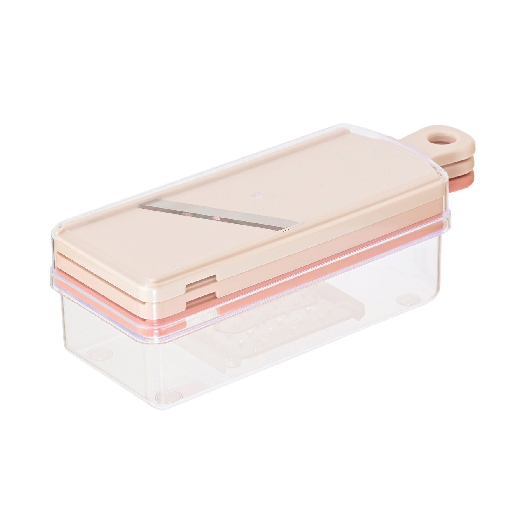 This vegetable slicer set combines a grater, julienne cutter, and slicer.