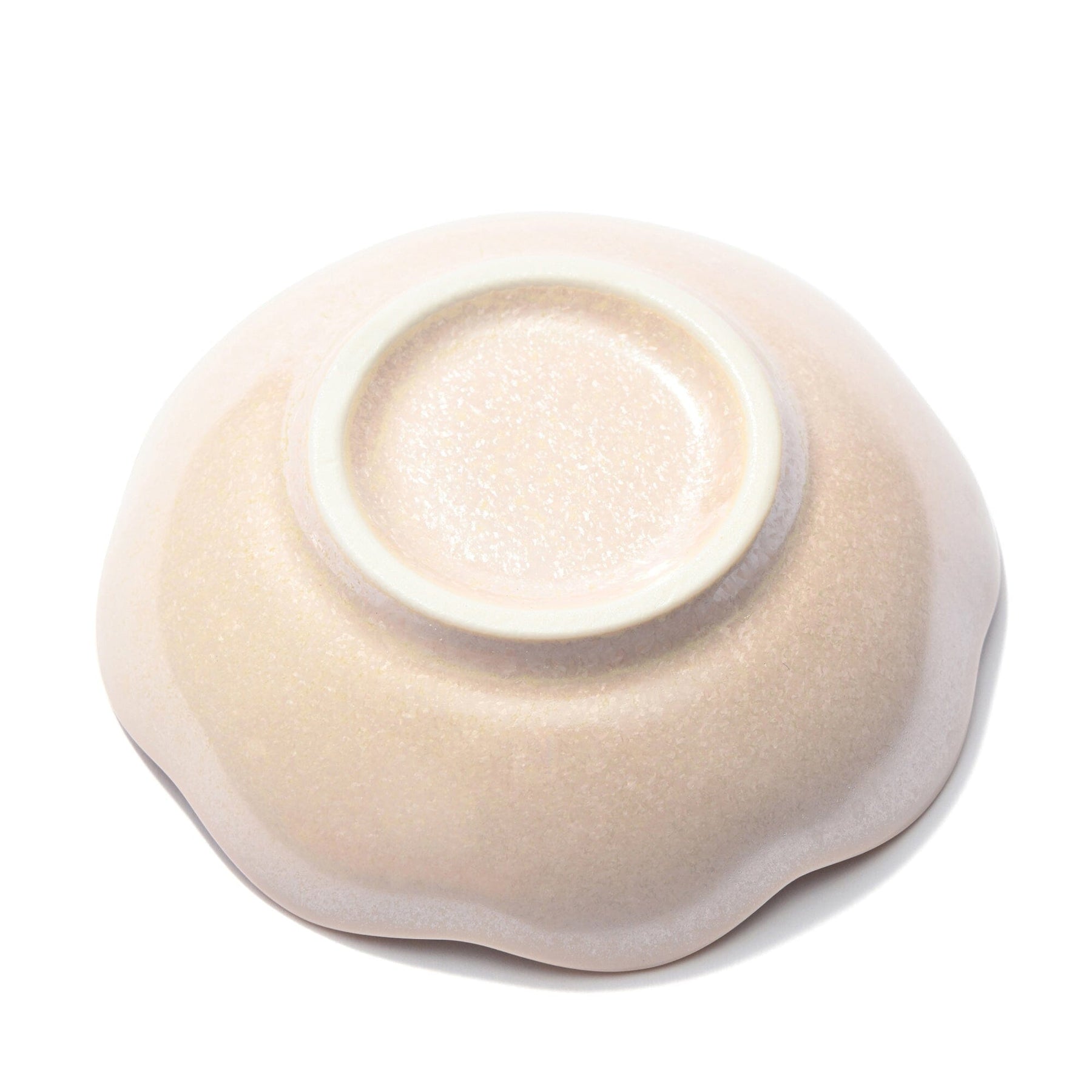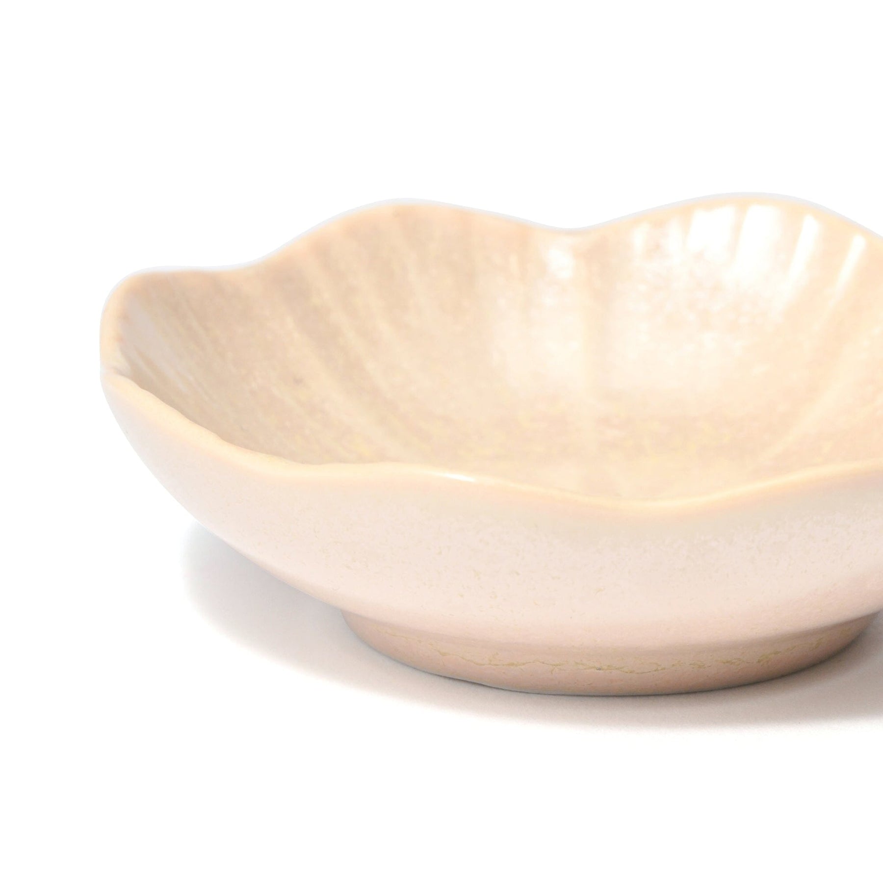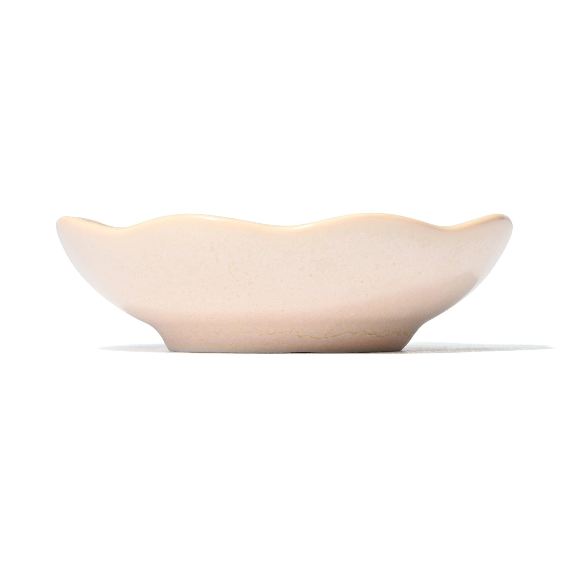 This small dish is crafted with a special glaze that creates a beautiful crystalline pattern during firing.