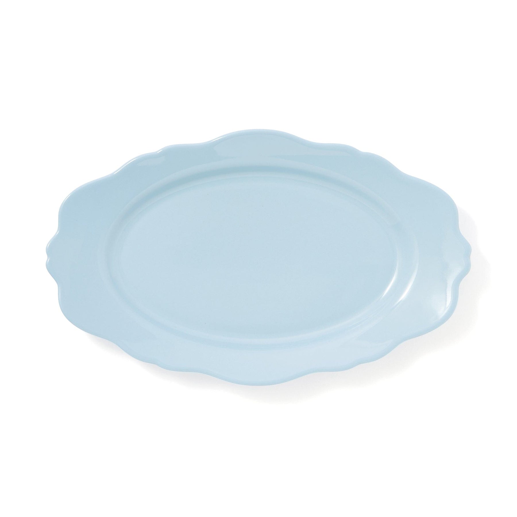 This elegant oval plate features a soft, scalloped shape that catches the eye.