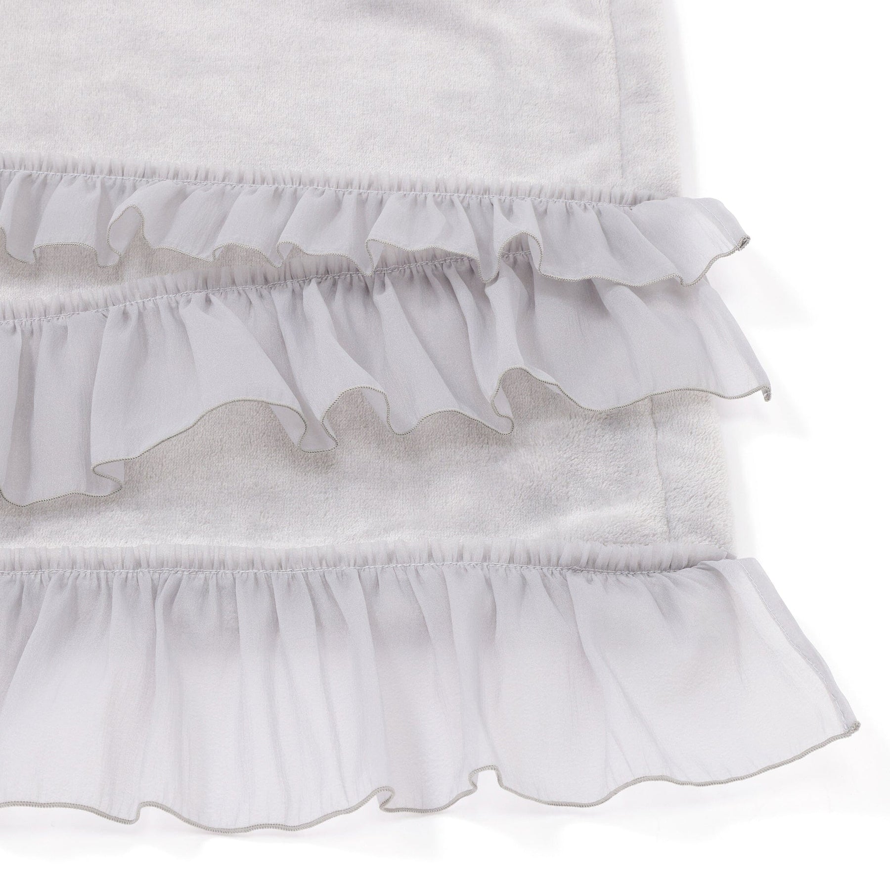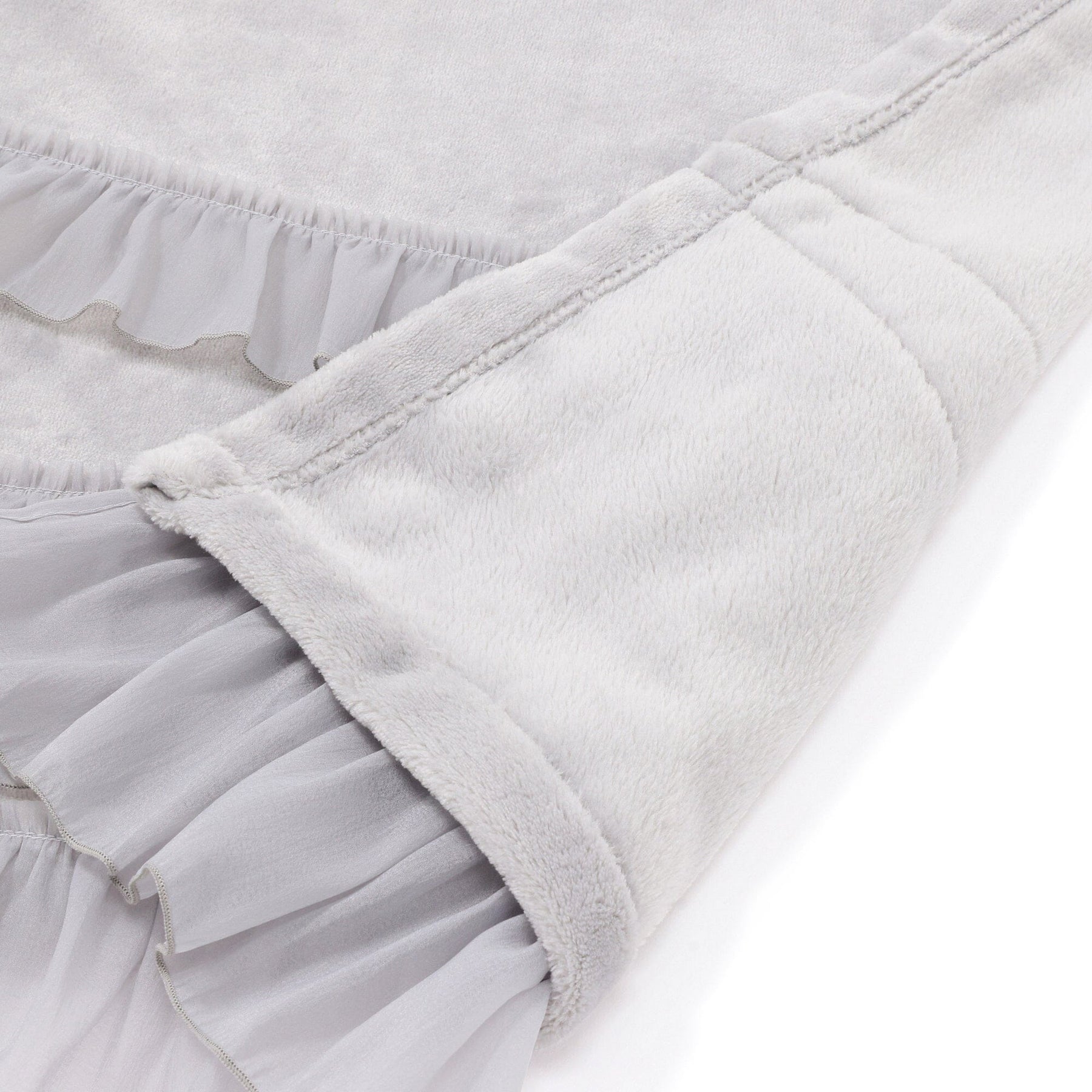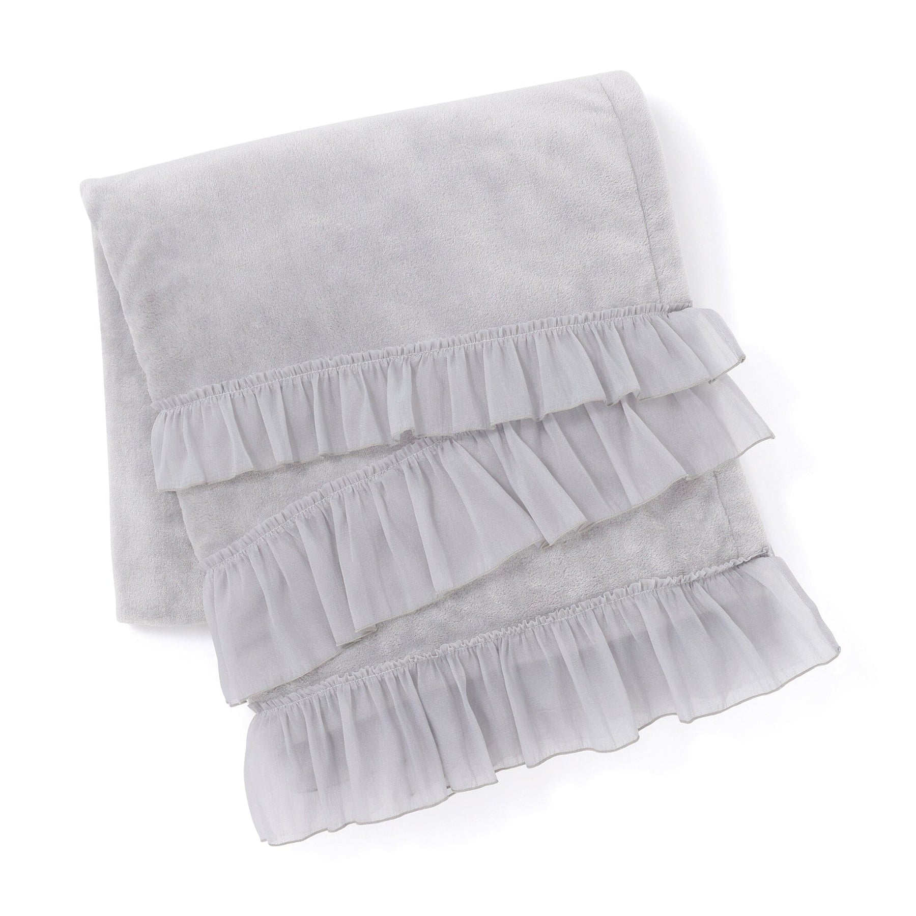 This throw (lap blanket) is made of smooth microfiber fabric with soft organza ruffles.