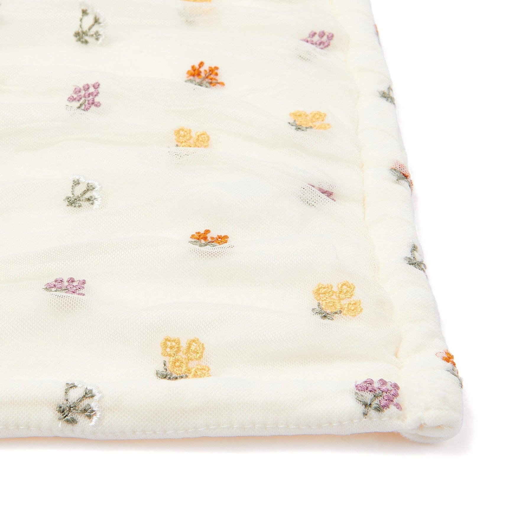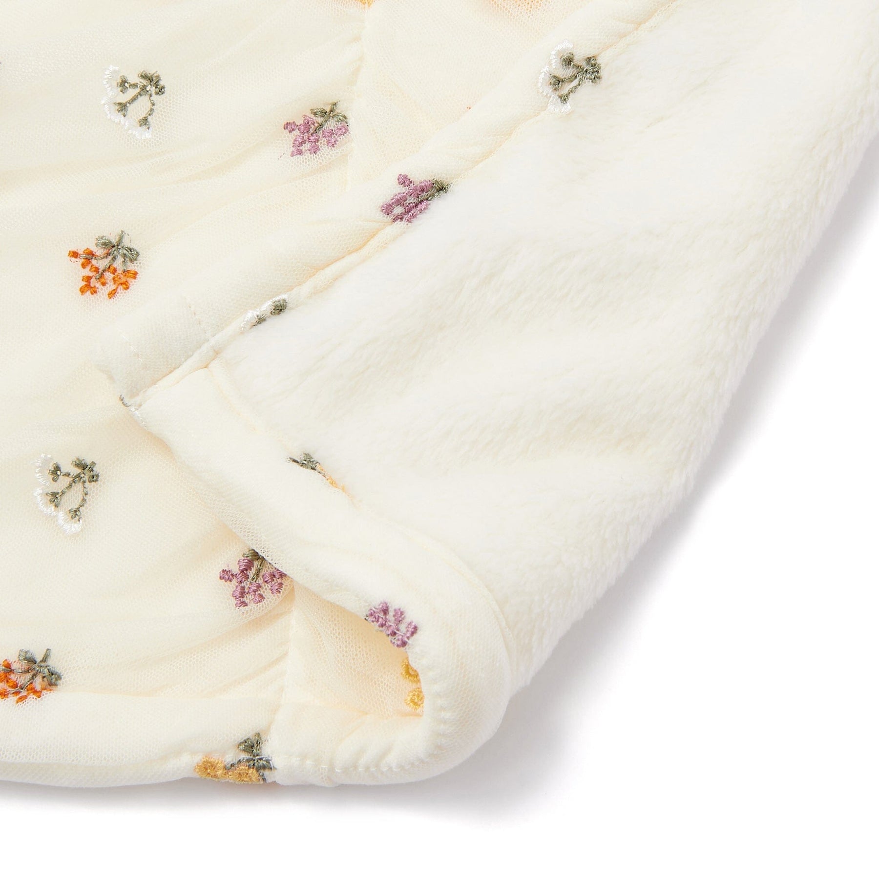 This trendy throw features spring-like tulle and cute floral embroidery.