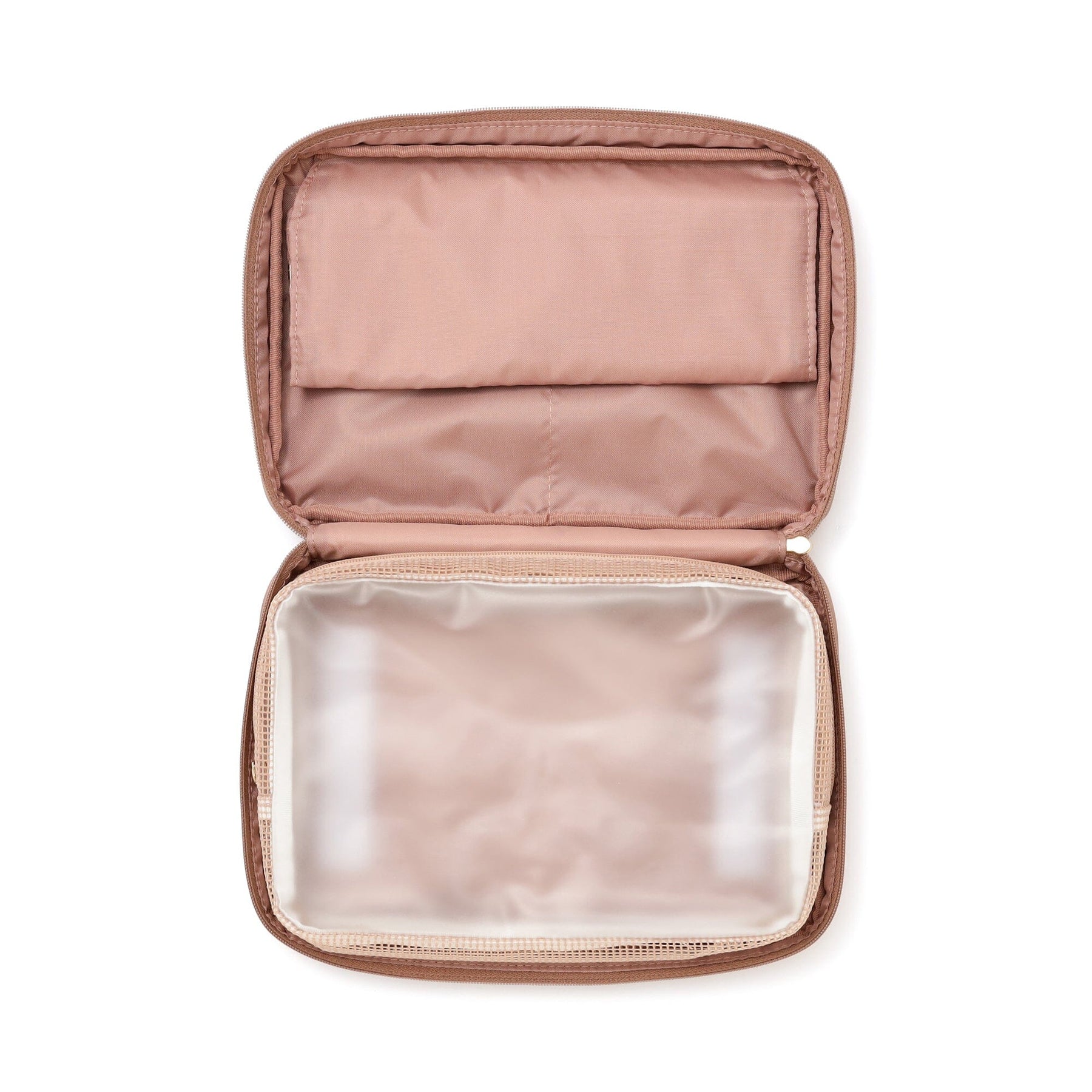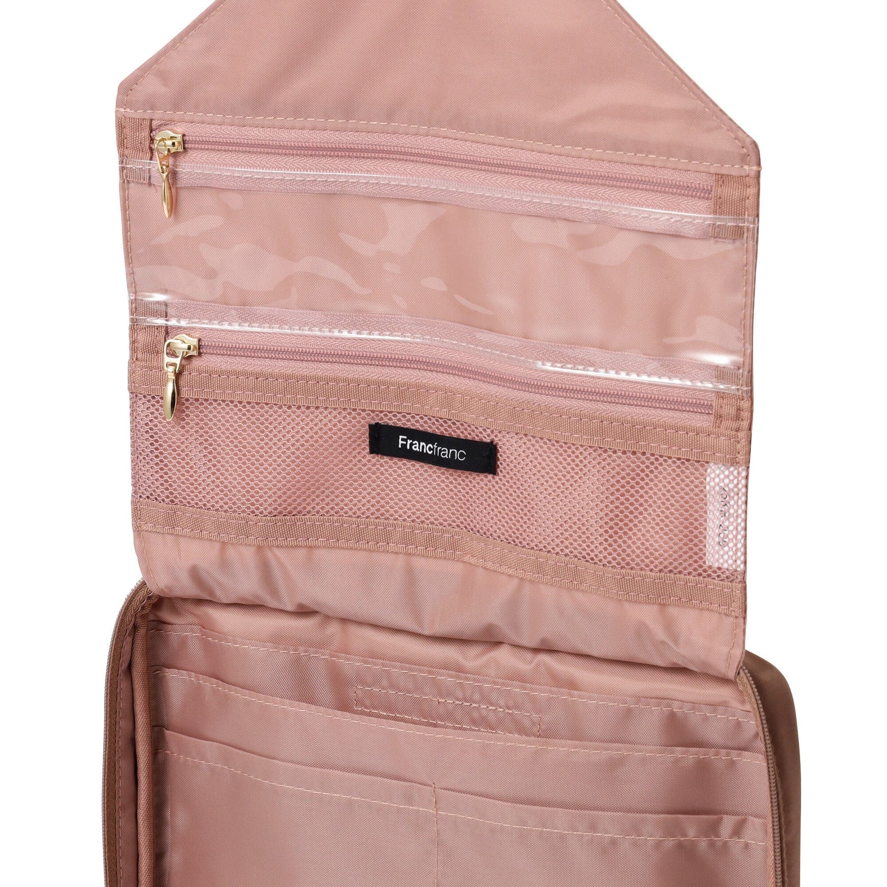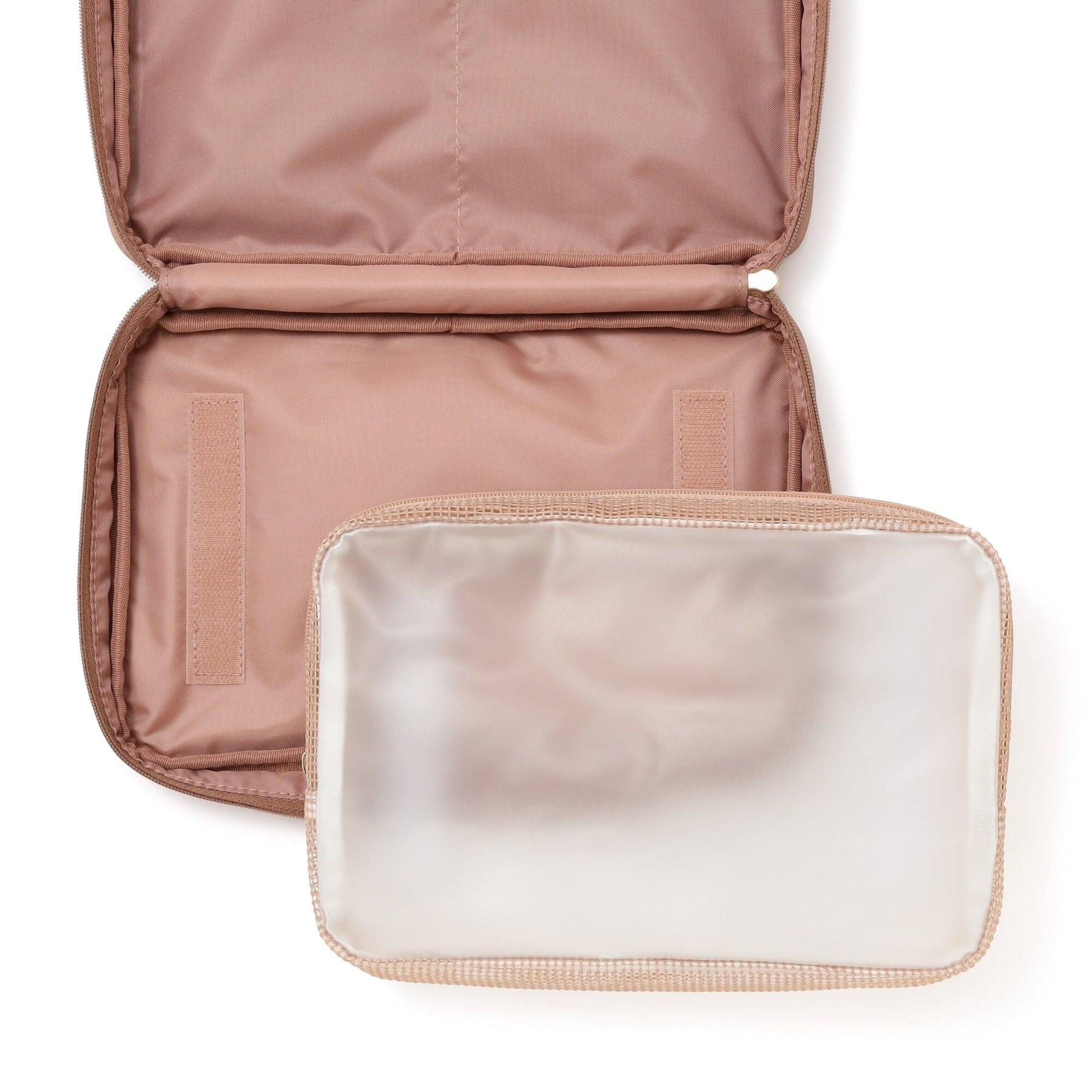 The mesh zippered pocket is perfect for storing small items like cosmetics, toothbrushes, and hairpins.
