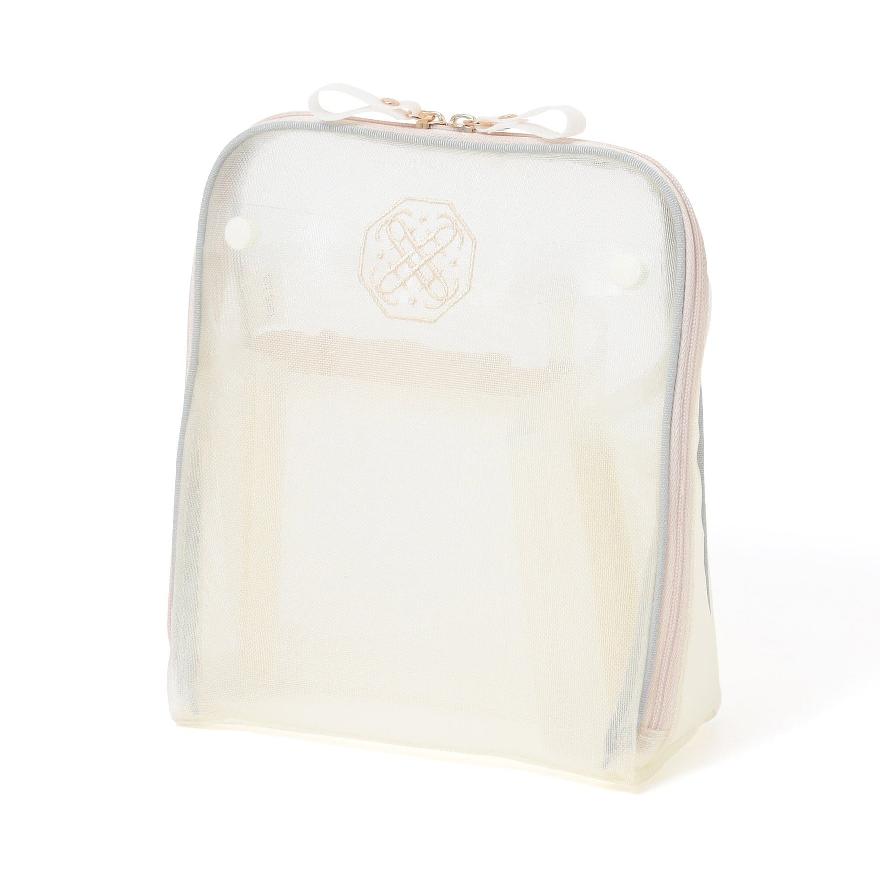 Bicolor Satin Mesh Tool Stand Pouch Mint X Ivory