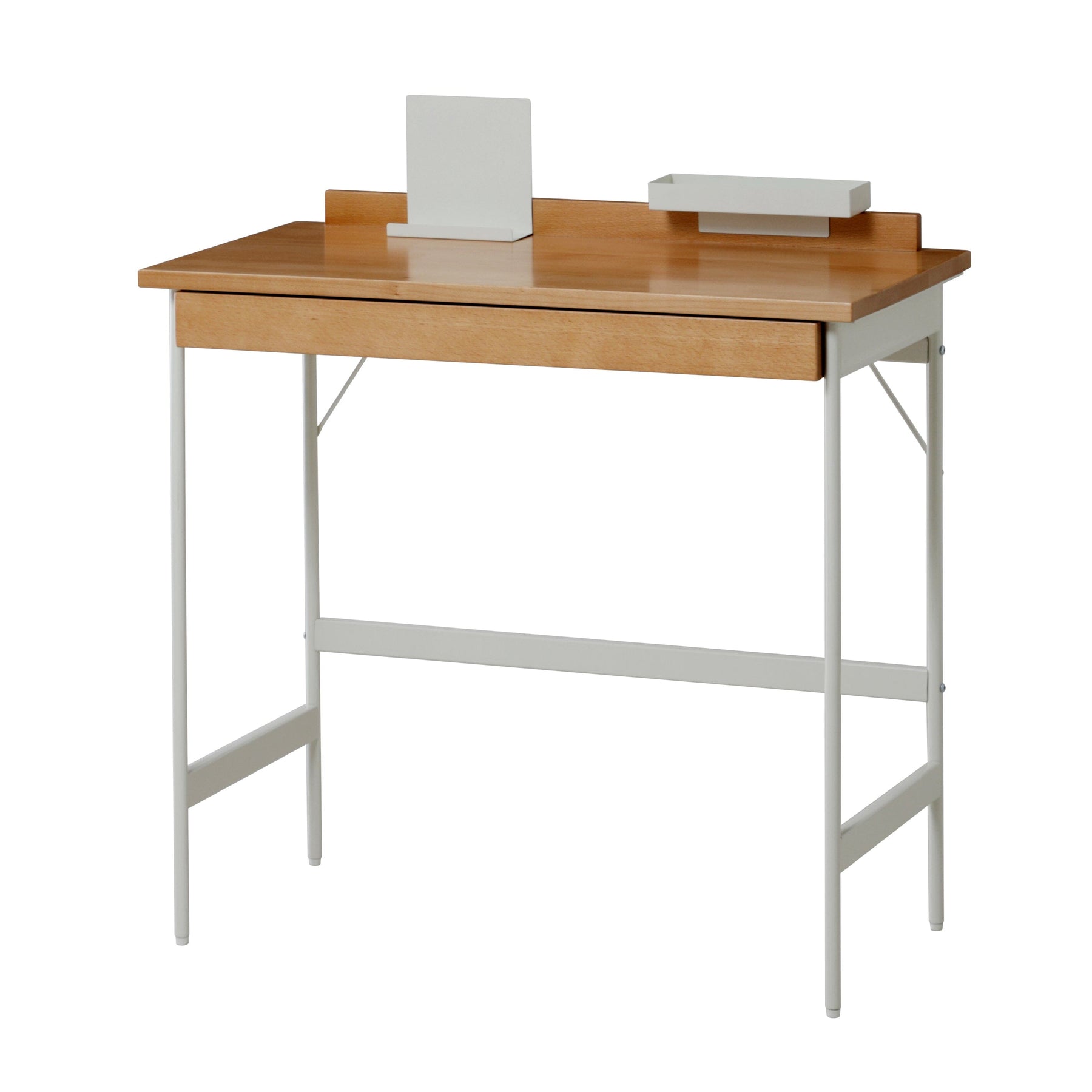 ■Natural design of beech wood and steel (white) ■Compact size of 800mm wide and 400mm deep ■Includes side hooks, a large-capacity drawer, a removable tray and stand ■Sufficient storage capacity allows for space-saving and efficient work